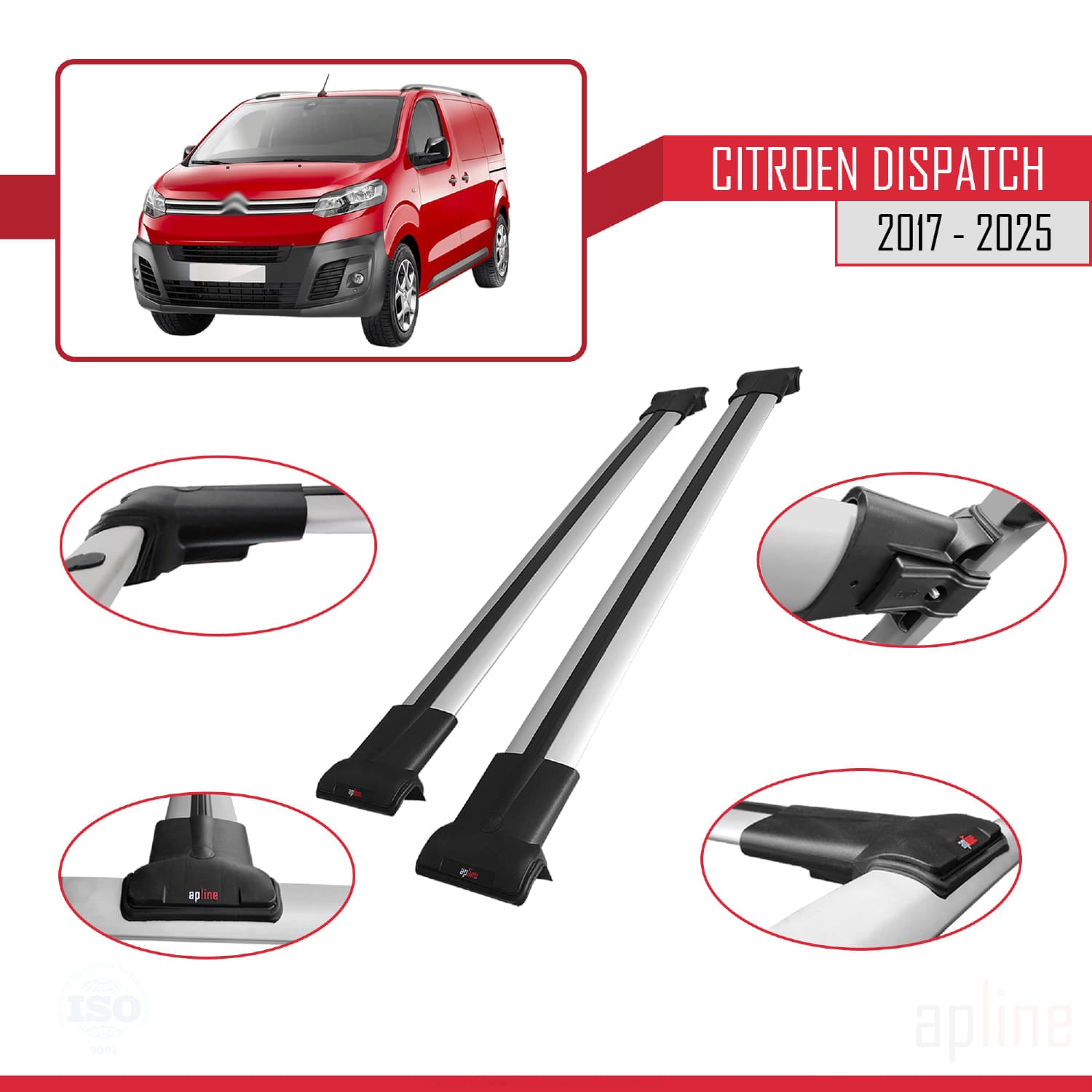 Kompatibel mit Citroen Dispatch (K0) 2017-2025 FLY Modell Dachgepäckträger, graues Aluminium, 2 Stangen