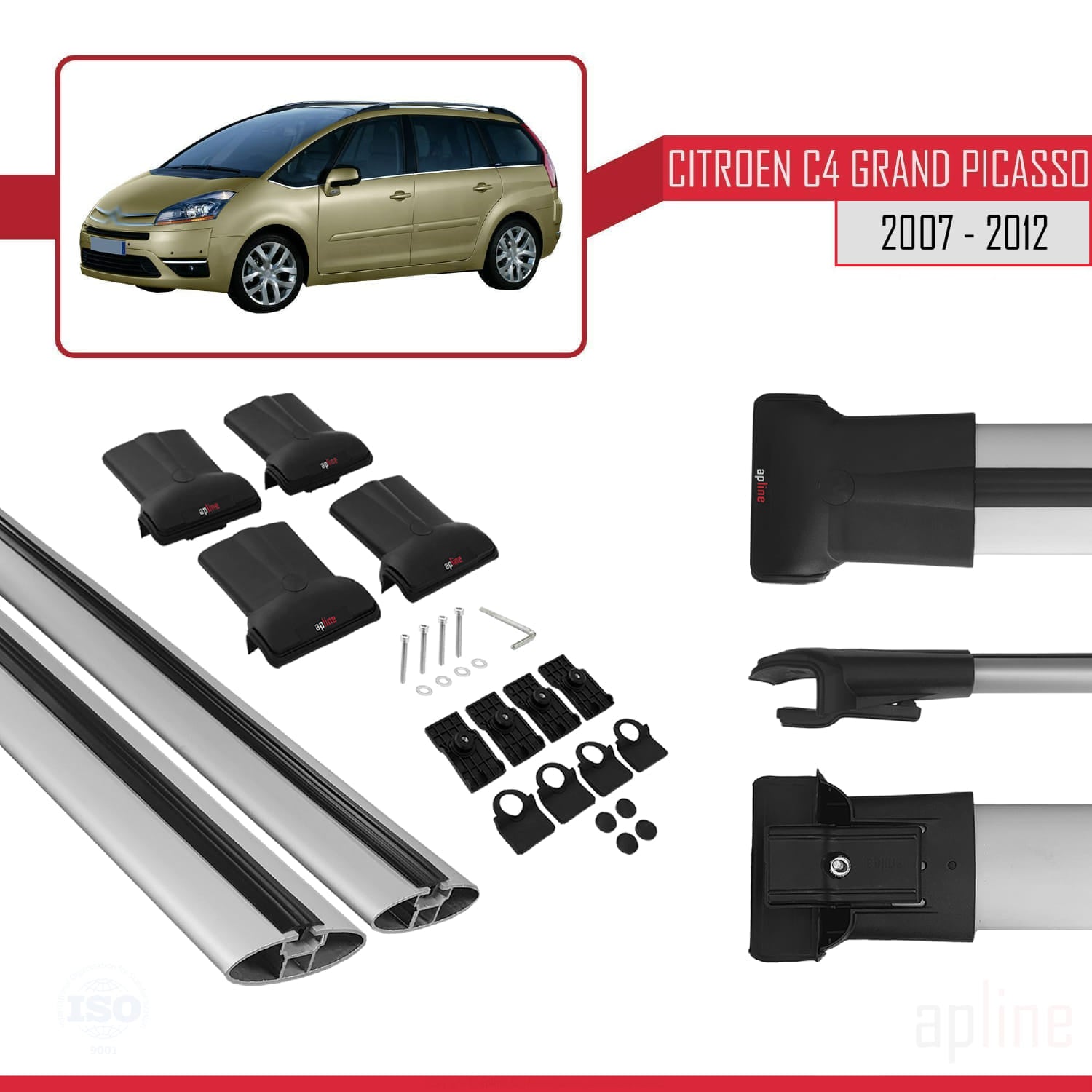 Kompatibel mit Citroen Grand C4 Picasso 2007-2012 FLY Modell Dachgepäckträger, graues Aluminium, 2 Stangen