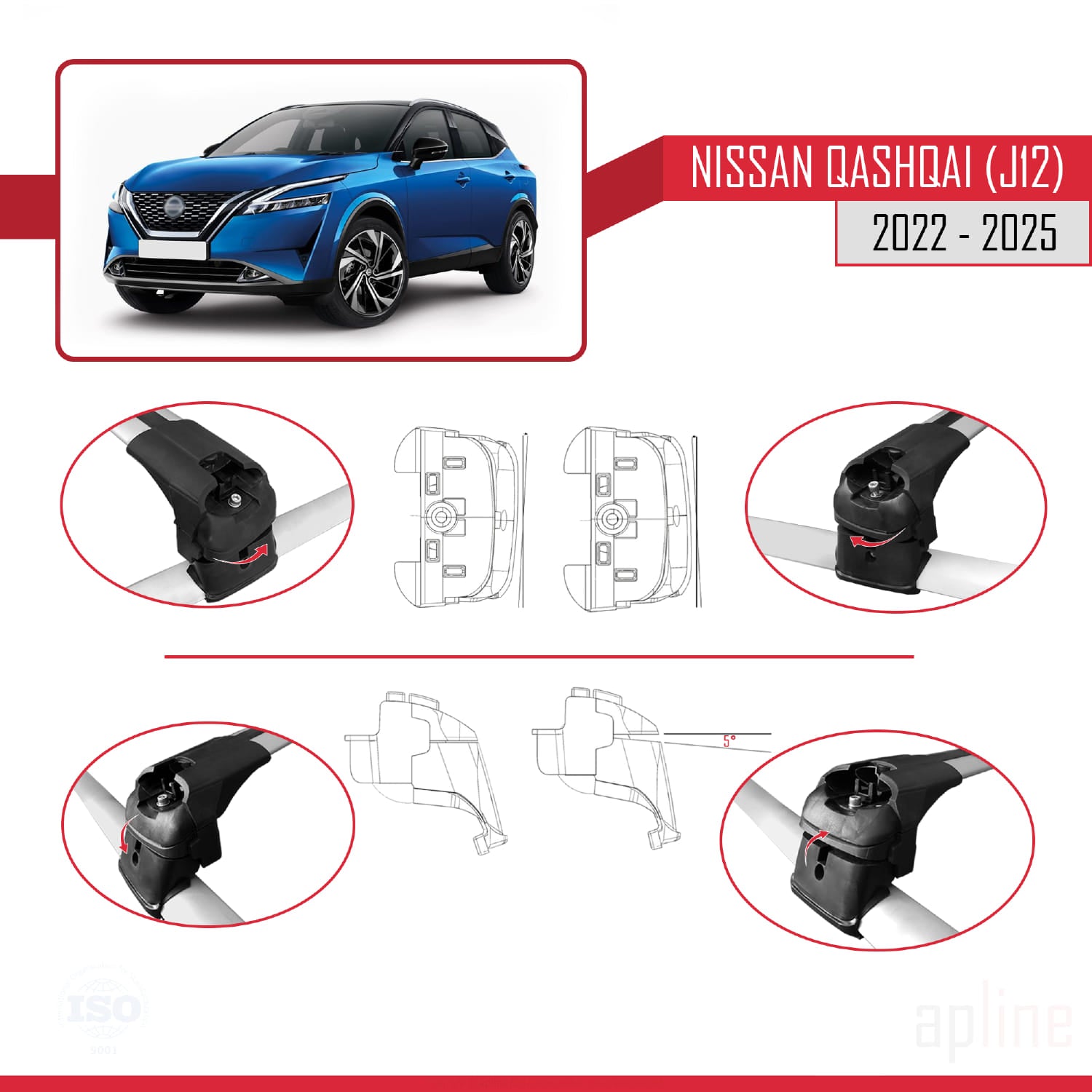 Compatible avec Nissan Qashqai 3 (J12) 2022-2025 ACE-2 Barres de Toit Railing Porte-Bagages de Voiture Gris Aluminium 2 Barres