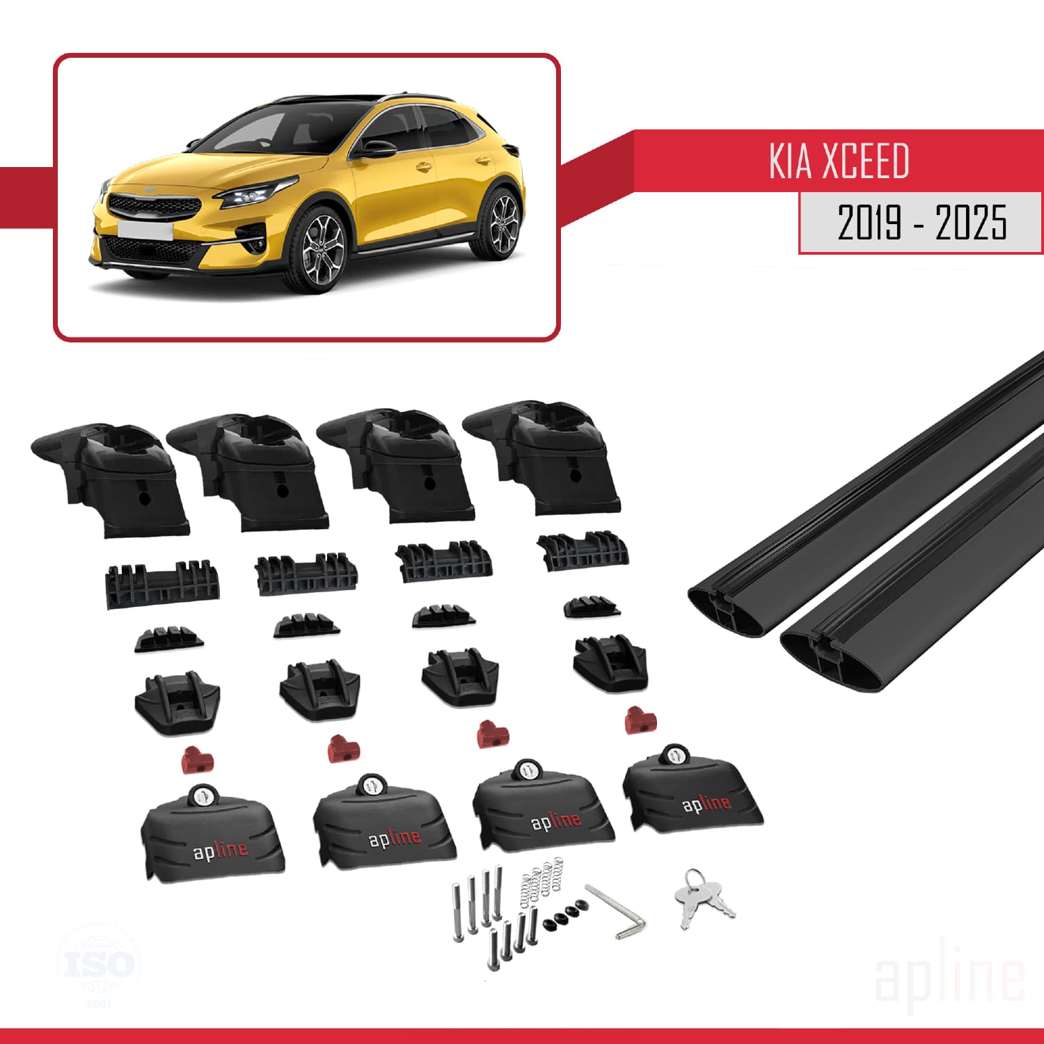 Compatible avec Kia XCeed (CD) 2019-2025 ACE-2 Barres de Toit Railing Porte-Bagages de Voiture Noir Aluminium 2 Barres