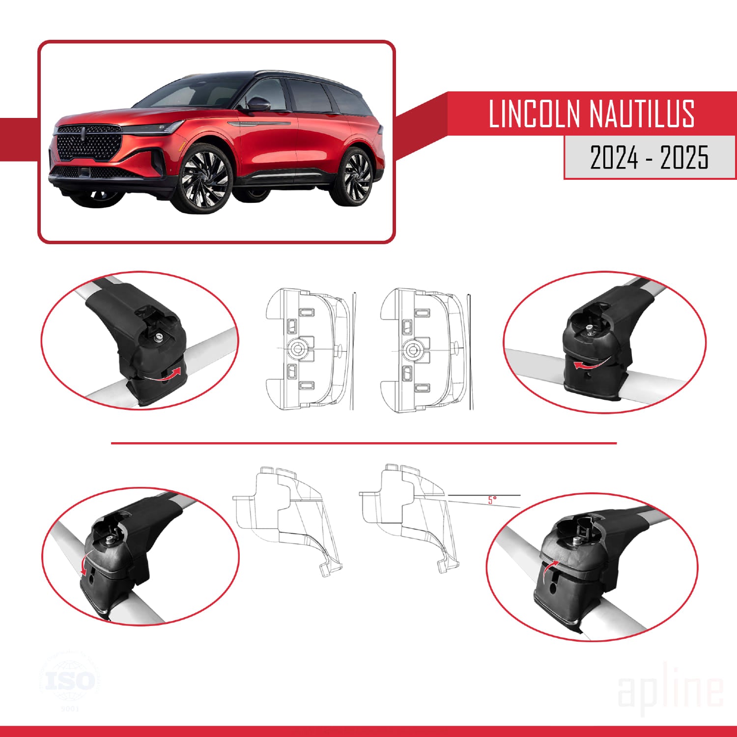 Compatible avec Lincoln Nautilus 2024-2025 ACE-2 Barres de Toit Railing Porte-Bagages de Voiture Gris Aluminium 2 Barres