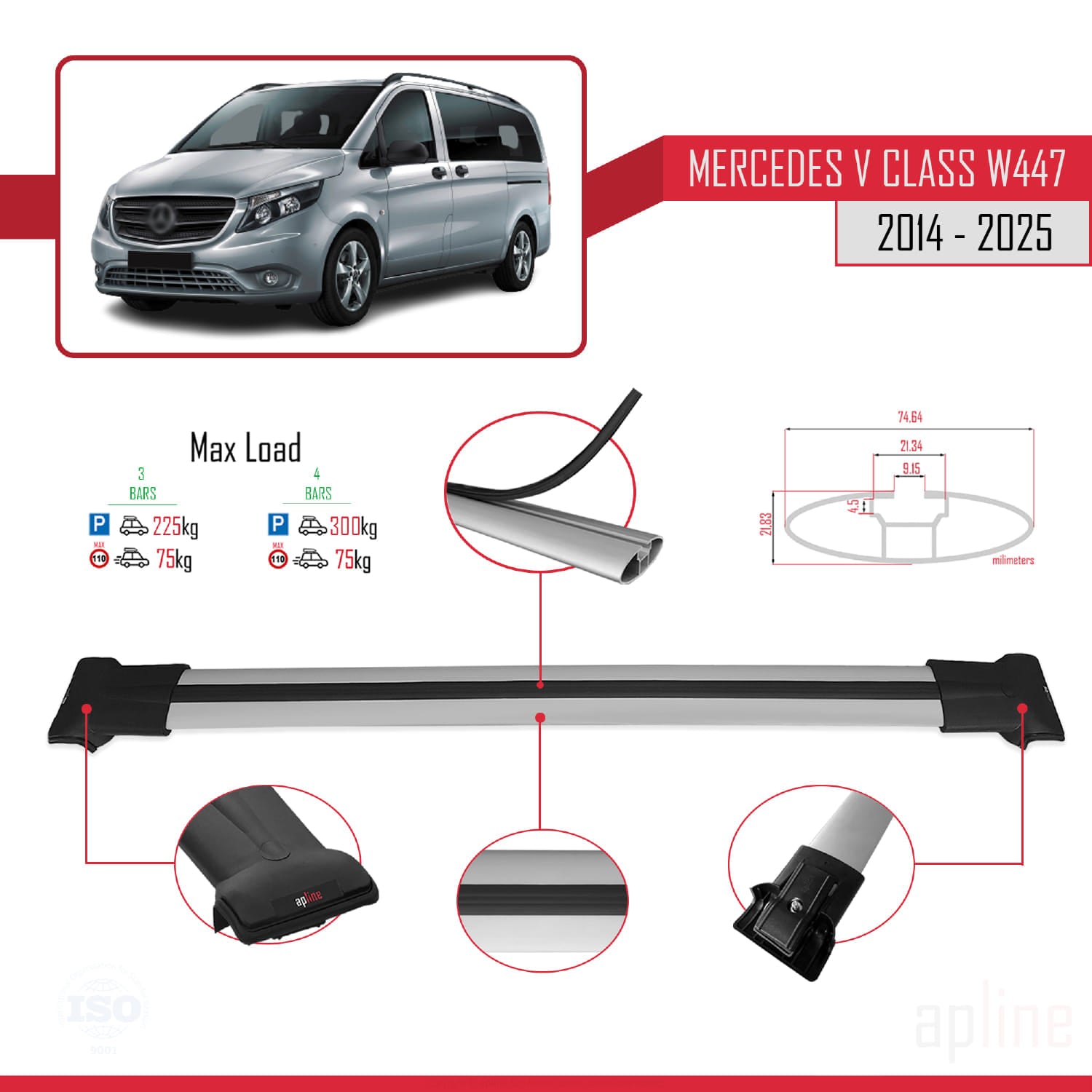 Il est utilisé pour transporter des charges sur votre véhicule. Il est nécessaire pour l'assemblage du porte-vélos, du porte-skis, du coffre de toit, etc. Ce produit se monte sur les barres de toit du véhicule. Ce produit ne peut pas être utilisé dans les véhicules sans barres de toit. Il est compatible avec les modèles présentant un espace entre le toit du véhicule et les barres de toit.