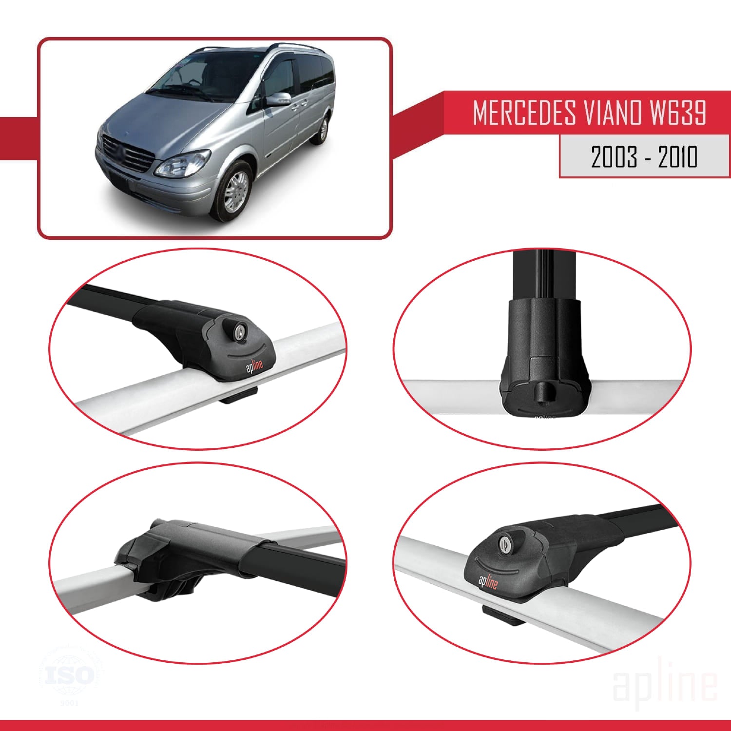 Compatible with Mercedes Viano 2 (W639) Pre-Facelift 2003-2010 ACE-1 Car Roof Rack Cross Bar Black Aluminium 2 Bars