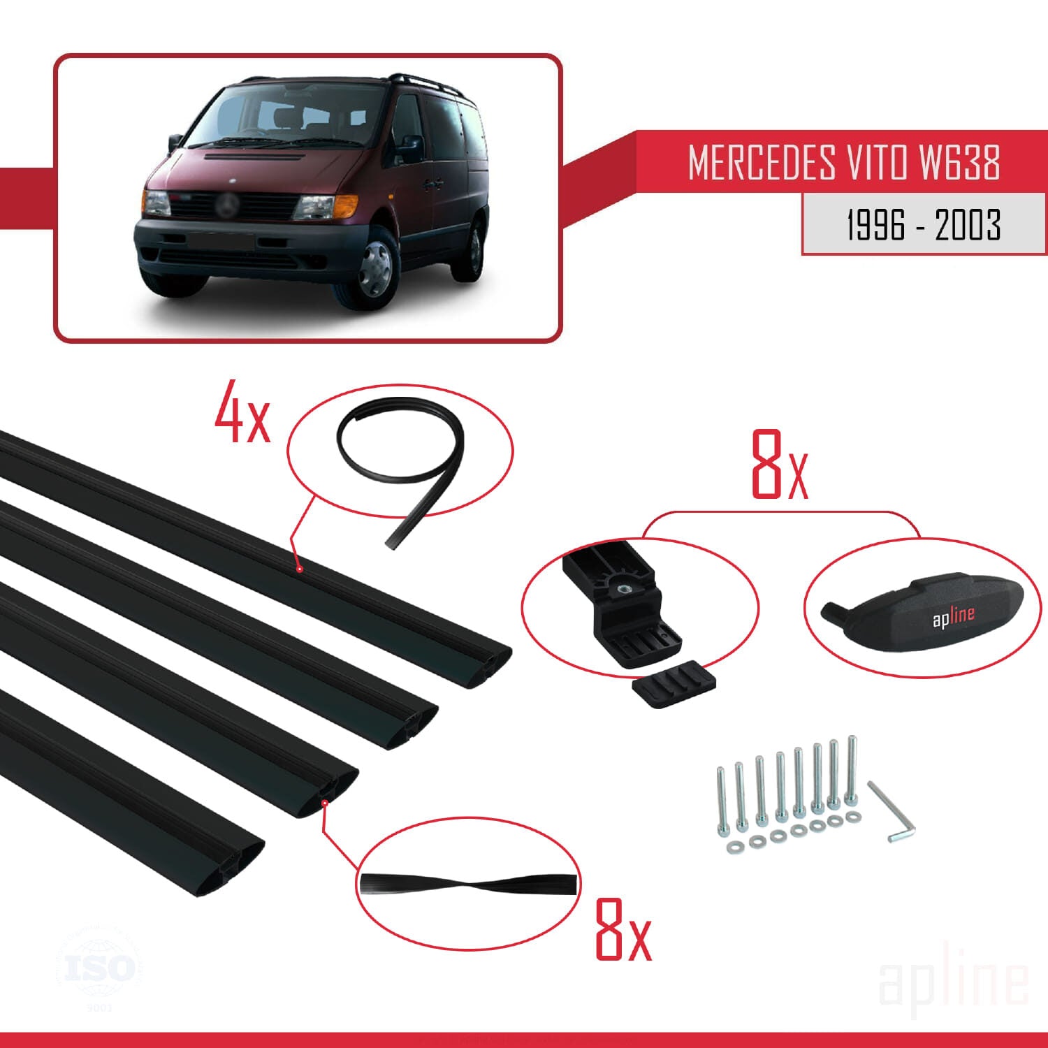 Compatible with Mercedes Vito (W638) 1996-2003 BASIC Model Car Roof Rack Cross Bar Black Aluminium 4 Bars