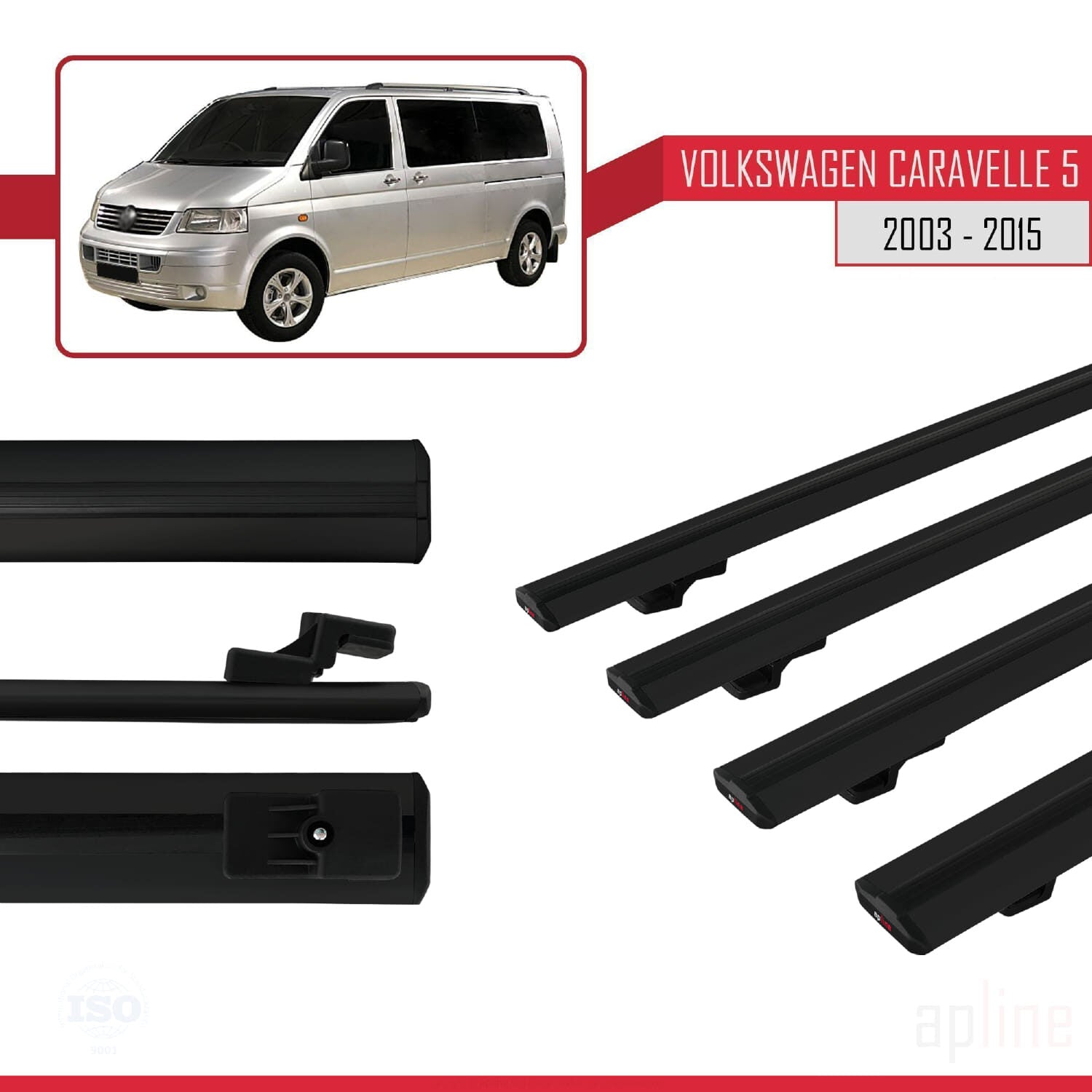 Compatible avec Volkswagen T5 Caravelle 2003-2015 BASIC Model Barres de Toit Railing Porte-Bagages de Voiture Noir Aluminium 4 Barres