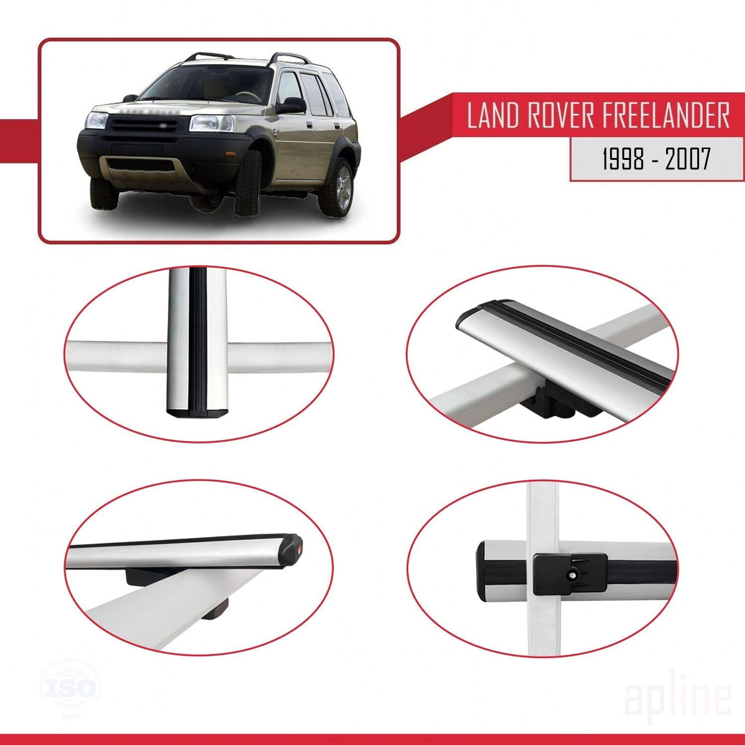 Compatible avec Land Rover Freelander (L314) 1998-2006 BASIC Model Barres de Toit Railing Porte-Bagages de Voiture Gris Aluminium 3 Barres