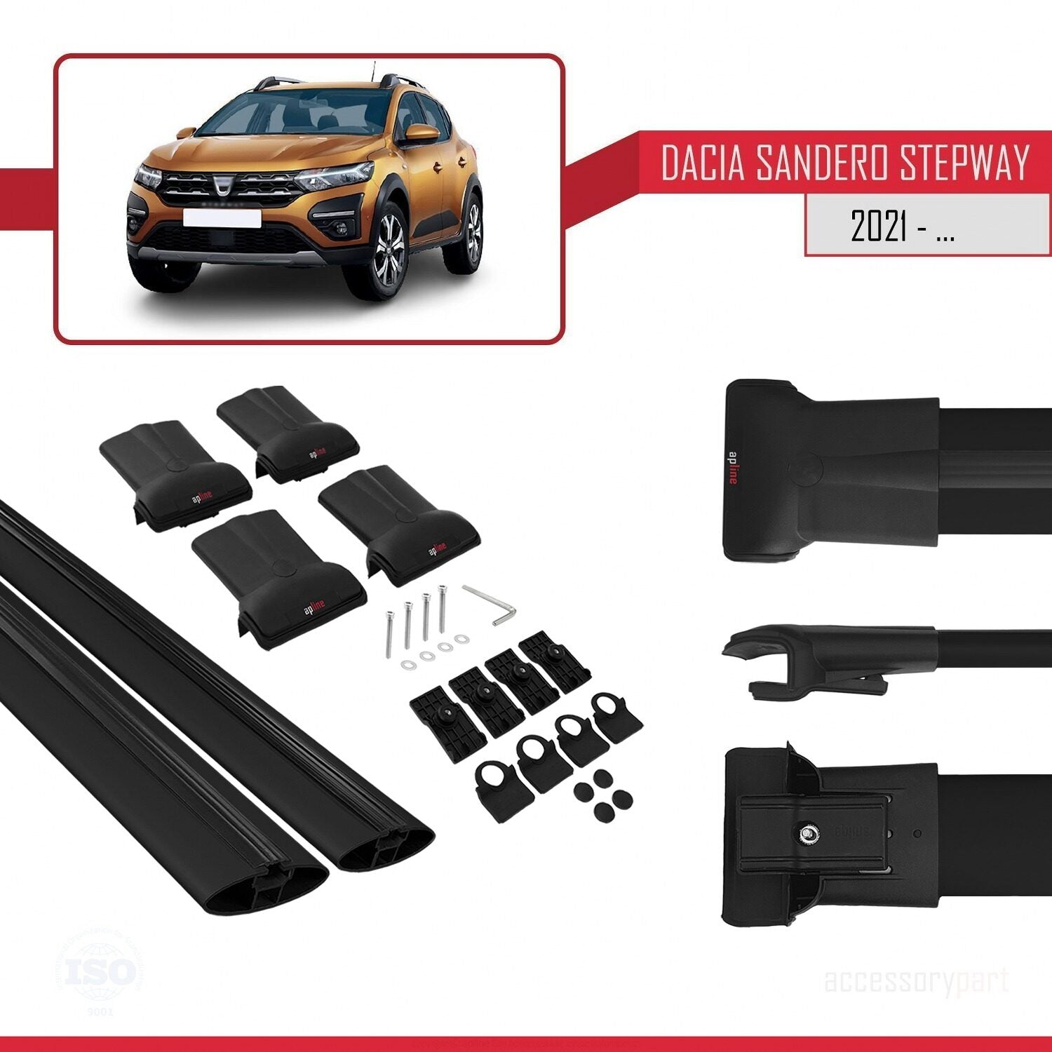Compatibile con Dacia Sandero Stepway 3 2021-2025 modello FLY Barre portatutto per auto Portapacchi in alluminio nero 2 barre