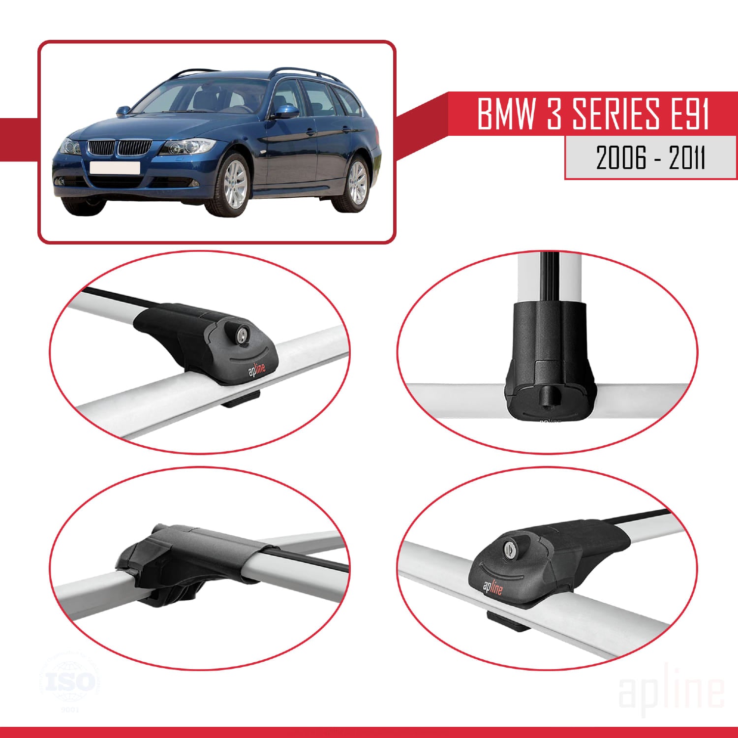 Compatible avec BMW 3 Series E91 Touring 2006-2011 ACE-1 Barres de Toit Railing Porte-Bagages de Voiture Gris Aluminium 3 Barres