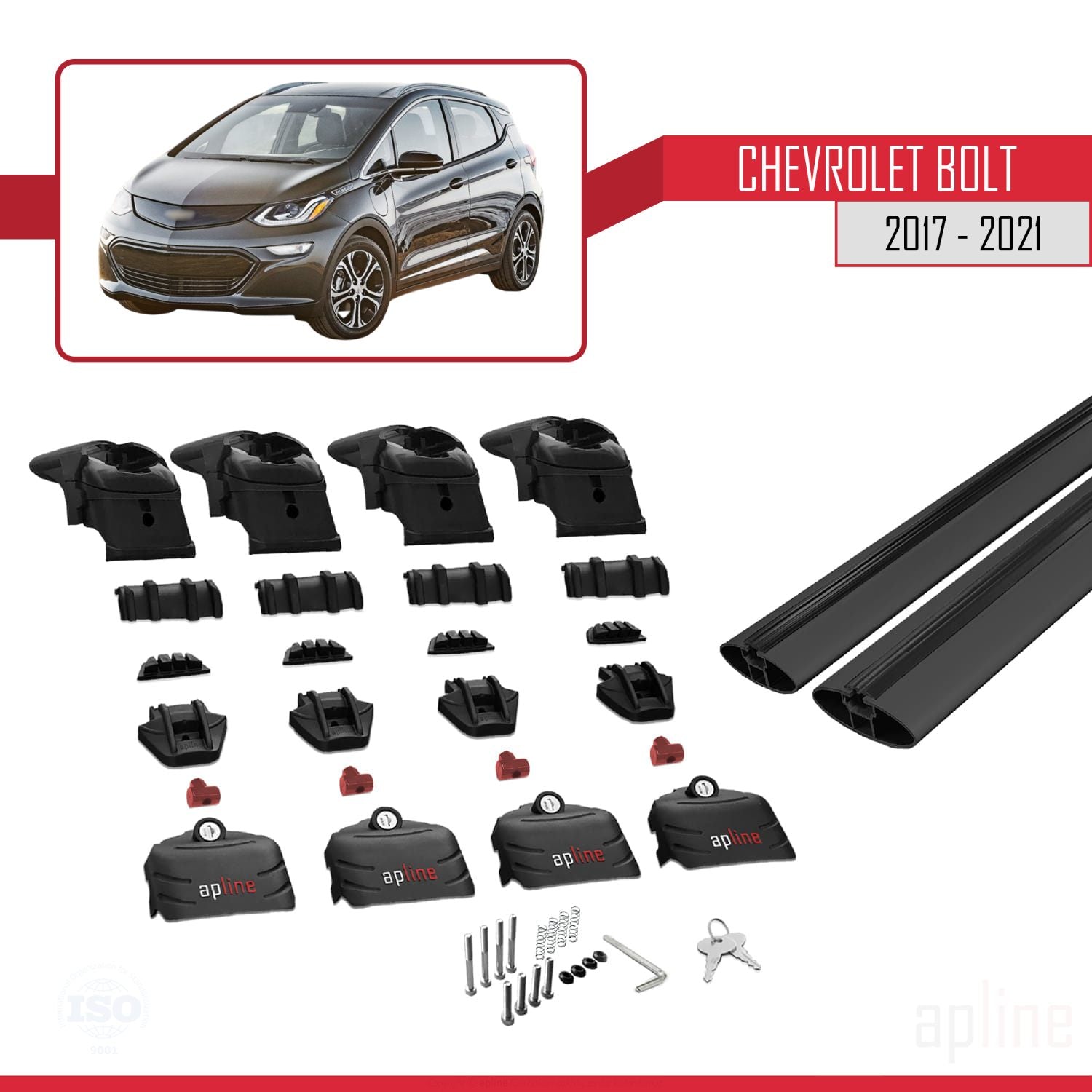 Compatible avec Chevrolet Bolt 2017-2021 ACE-2 Barres de Toit Railing Porte-Bagages de Voiture Noir Aluminium 2 Barres