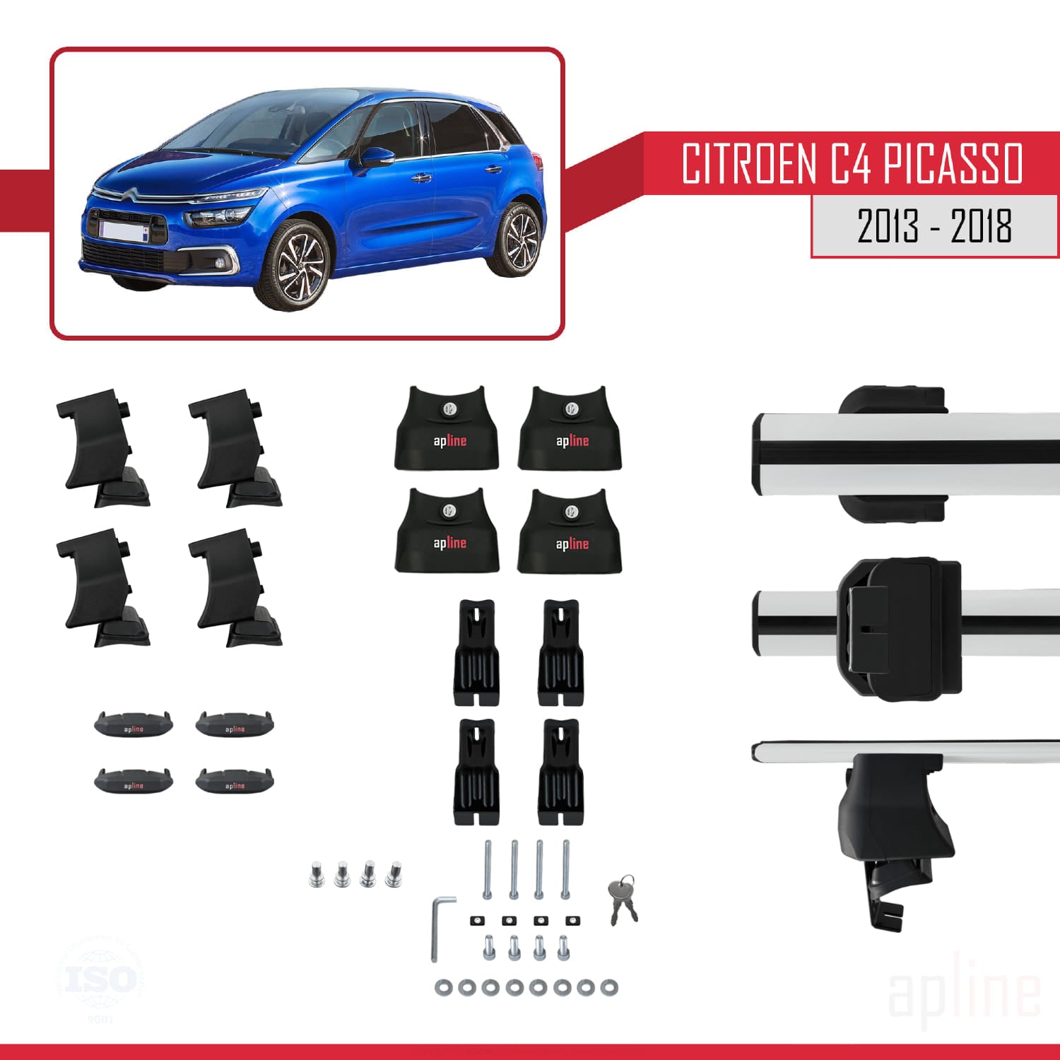 Compatible avec Citroen C4 Picasso 2 2013-2018 ACE-4 Barres de Toit Railing Porte-Bagages de Voiture Gris Aluminium 2 Barres