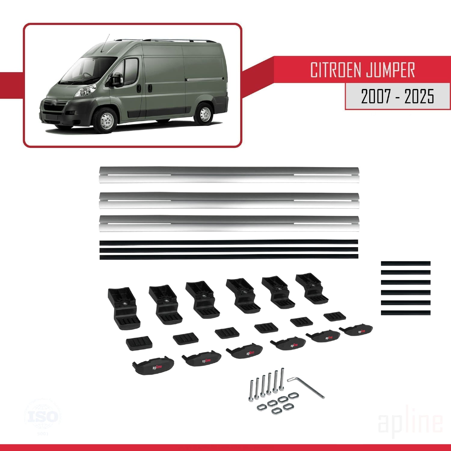 Compatible avec Citroen Jumper 2 2007-2025 BASIC Model Barres de Toit Railing Porte-Bagages de Voiture Gris Aluminium 3 Barres