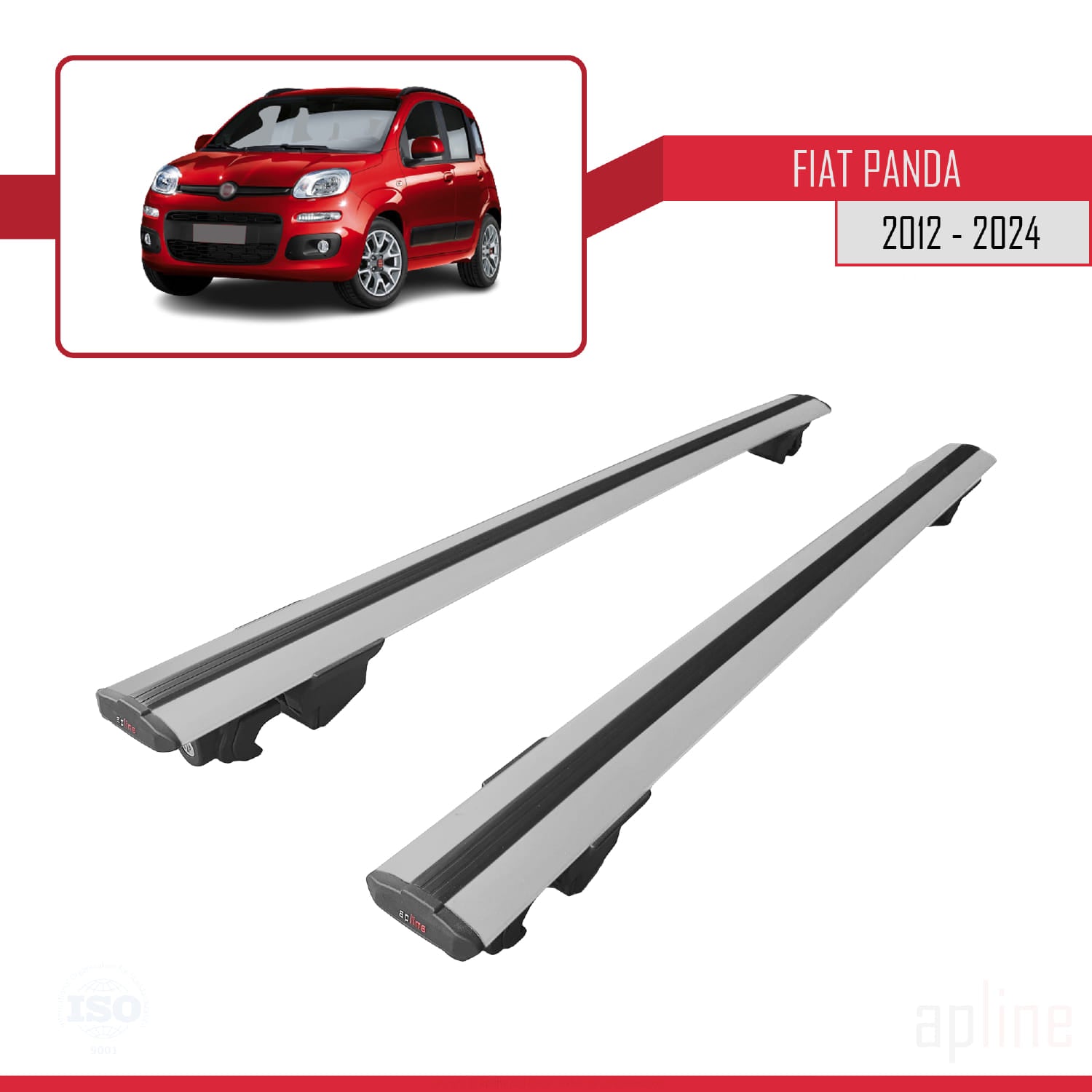 Compatible avec Fiat Panda 3 (319) 2012-2024 HOOK Model Barres de Toit Railing Porte-Bagages de Voiture Gris Aluminium 2 Barres