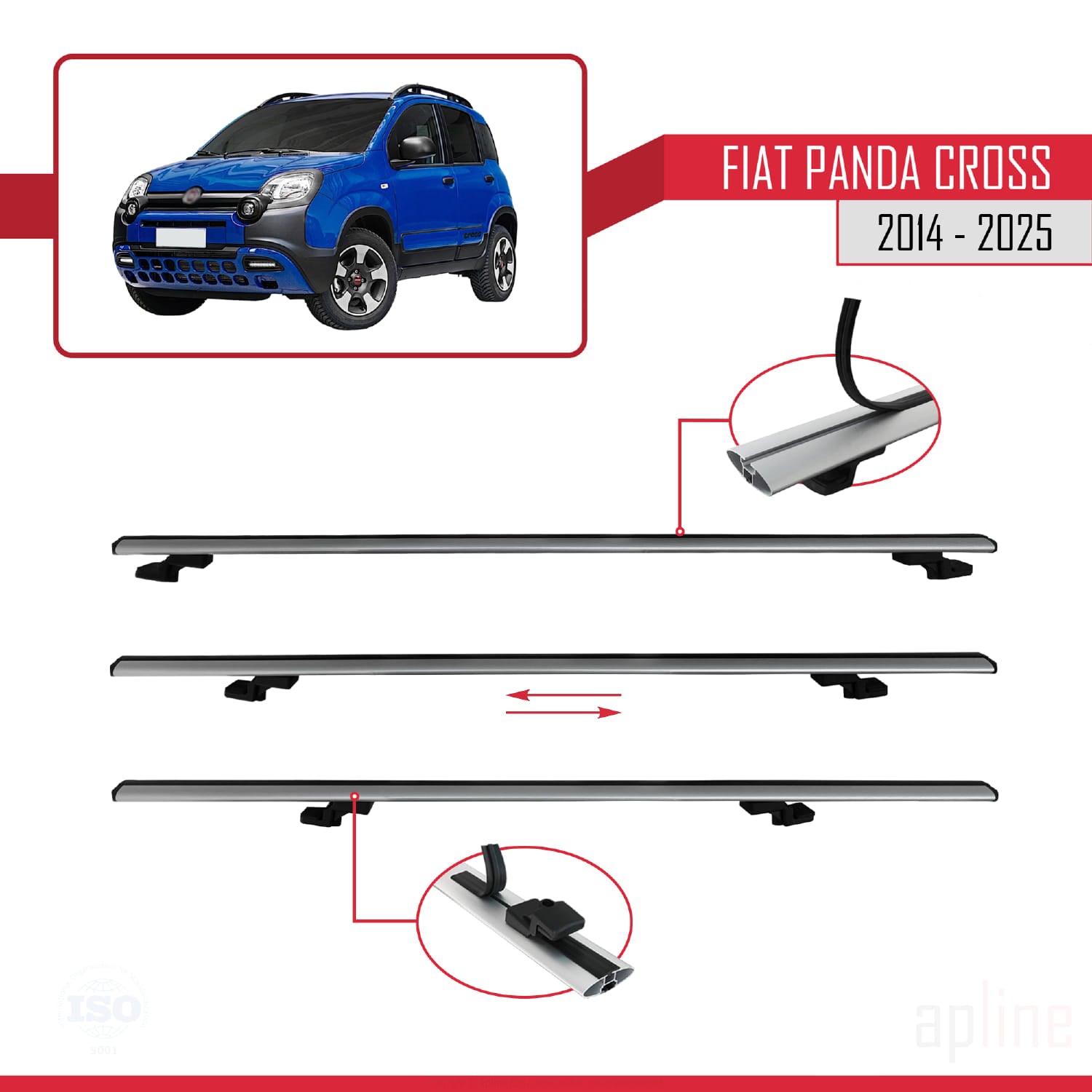 Compatible avec Fiat Panda Cross 2014-2025 BASIC Model Barres de Toit Railing Porte-Bagages de Voiture Gris Aluminium 3 Barres