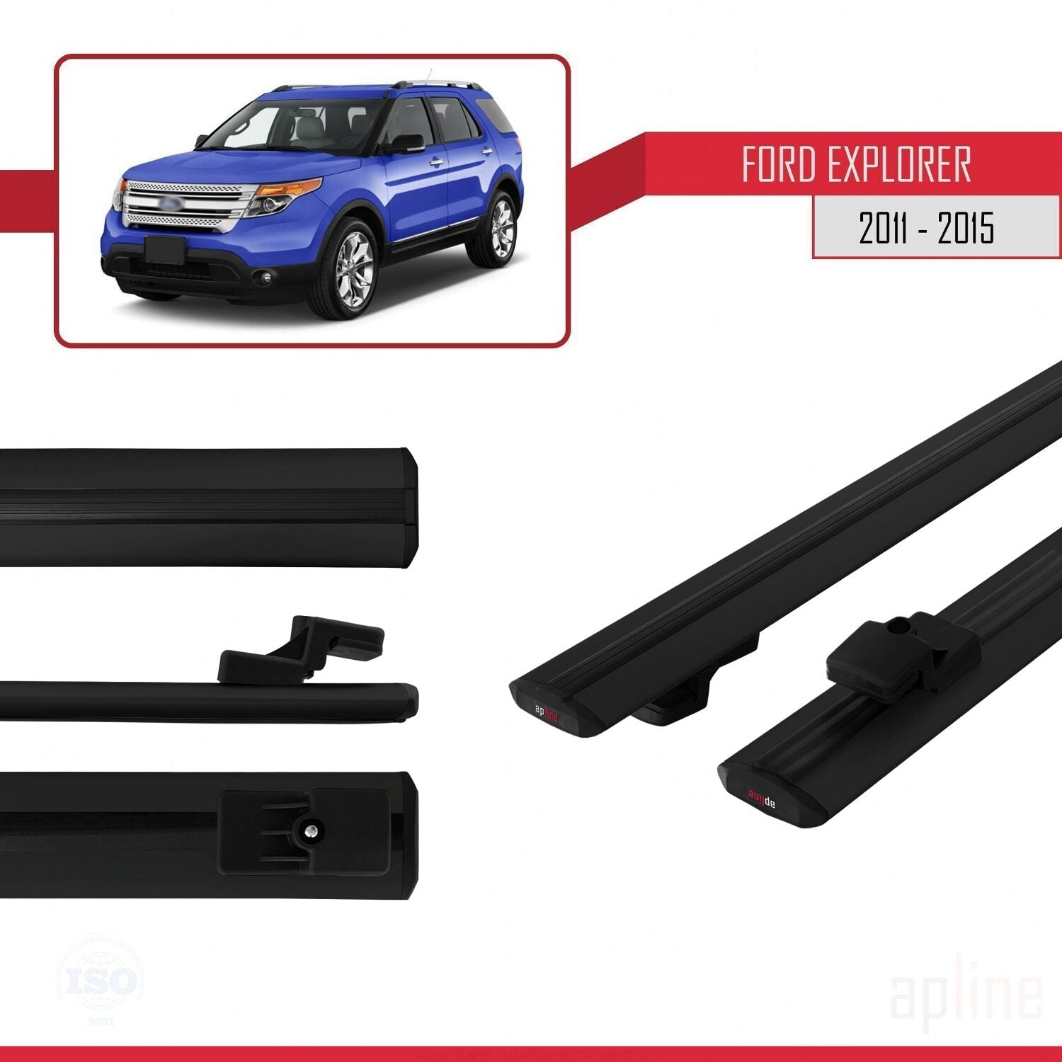 Compatible avec Ford Explorer 5 (U502) Pre-Facelift 2011-2015 BASIC Model Barres de Toit Railing Porte-Bagages de Voiture Noir Aluminium 2 Barres
