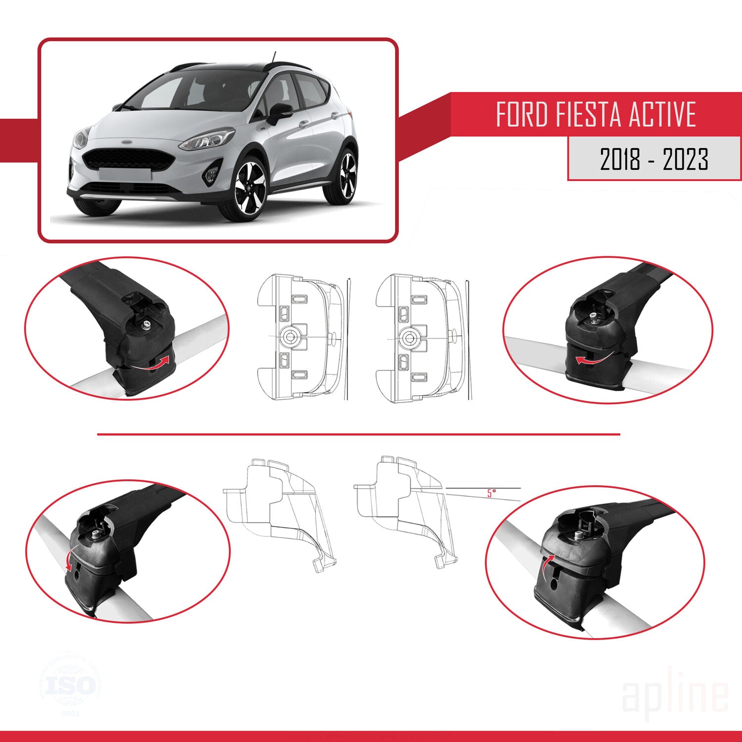 Compatible avec Ford Fiesta 7 Active 2018-2023 ACE-2 Barres de Toit Railing Porte-Bagages de Voiture Noir Aluminium 2 Barres
