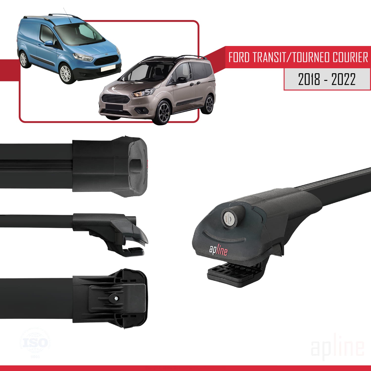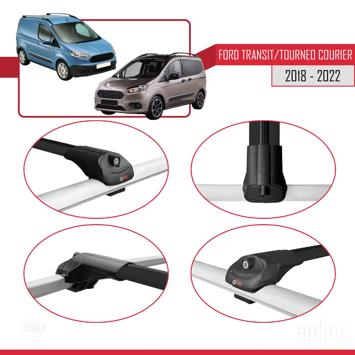 Compatible avec Ford Transit/Tourneo Courier Post-Facelift 2018-2022 ACE-1 Barres de Toit Railing Porte-Bagages de Voiture Noir Aluminium 4 Barres
