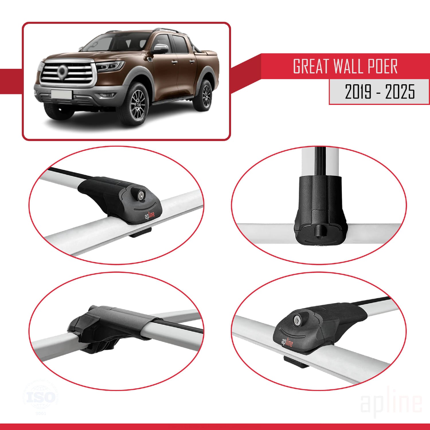 Ce produit convient aux modèles présentant un espace entre le toit du véhicule et la barre de toit.