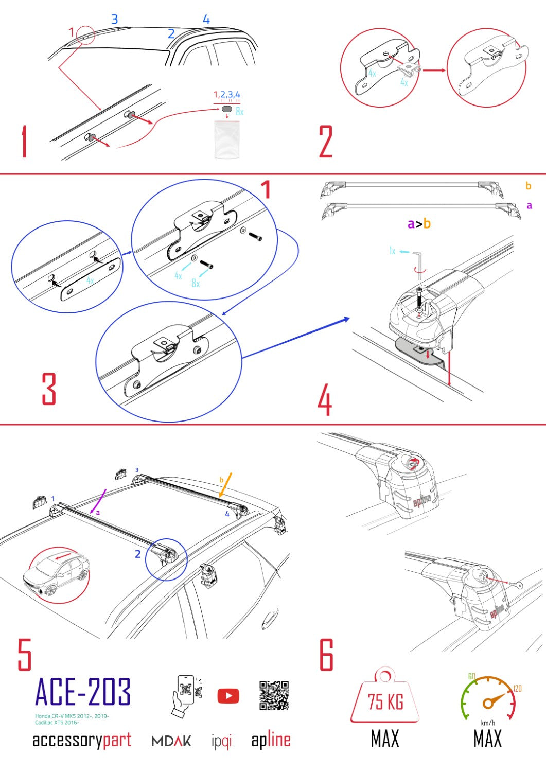 La limite de charge maximale dans le véhicule équipé de ce produit est de 75 kg. (Indépendamment des 2, 3 ou 4 barres d'aluminium, la limite légale est de 75 kg).