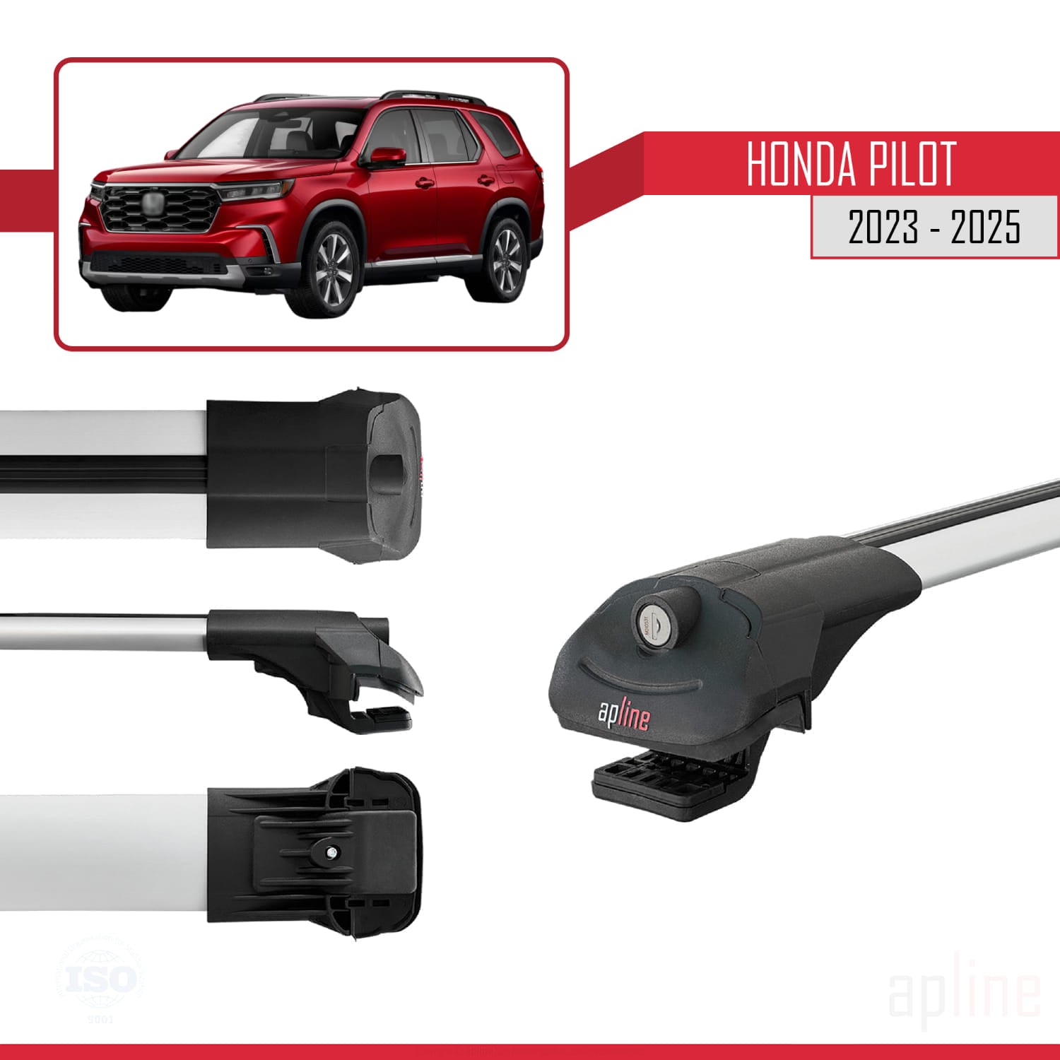 Compatible avec Honda Pilot 2023-2025 ACE-1 Barres de Toit Railing Porte-Bagages de Voiture Gris Aluminium 3 Barres
