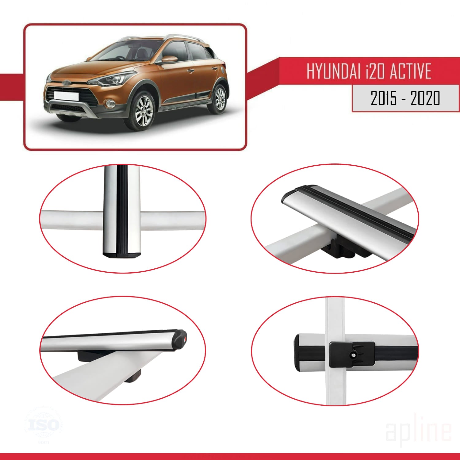 Compatible avec Hyundai i20 II Active 2015-2019 BASIC Model Barres de Toit Railing Porte-Bagages de Voiture Gris Aluminium 2 Barres