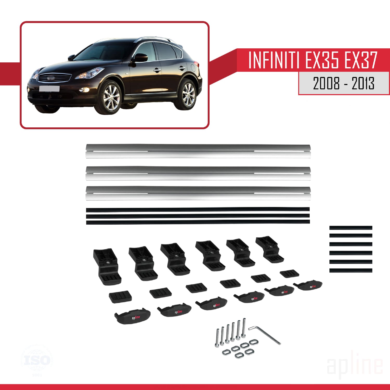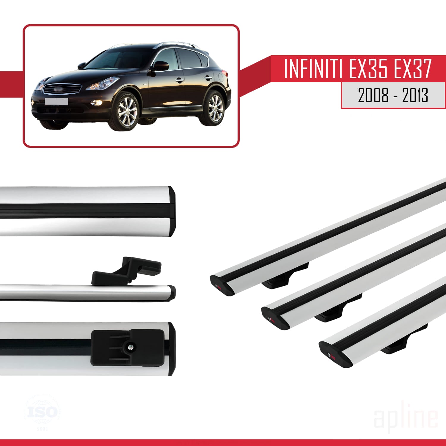Compatible avec Infiniti EX35 EX37 2008-2013 BASIC Model Barres de Toit Railing Porte-Bagages de Voiture Gris Aluminium 3 Barres