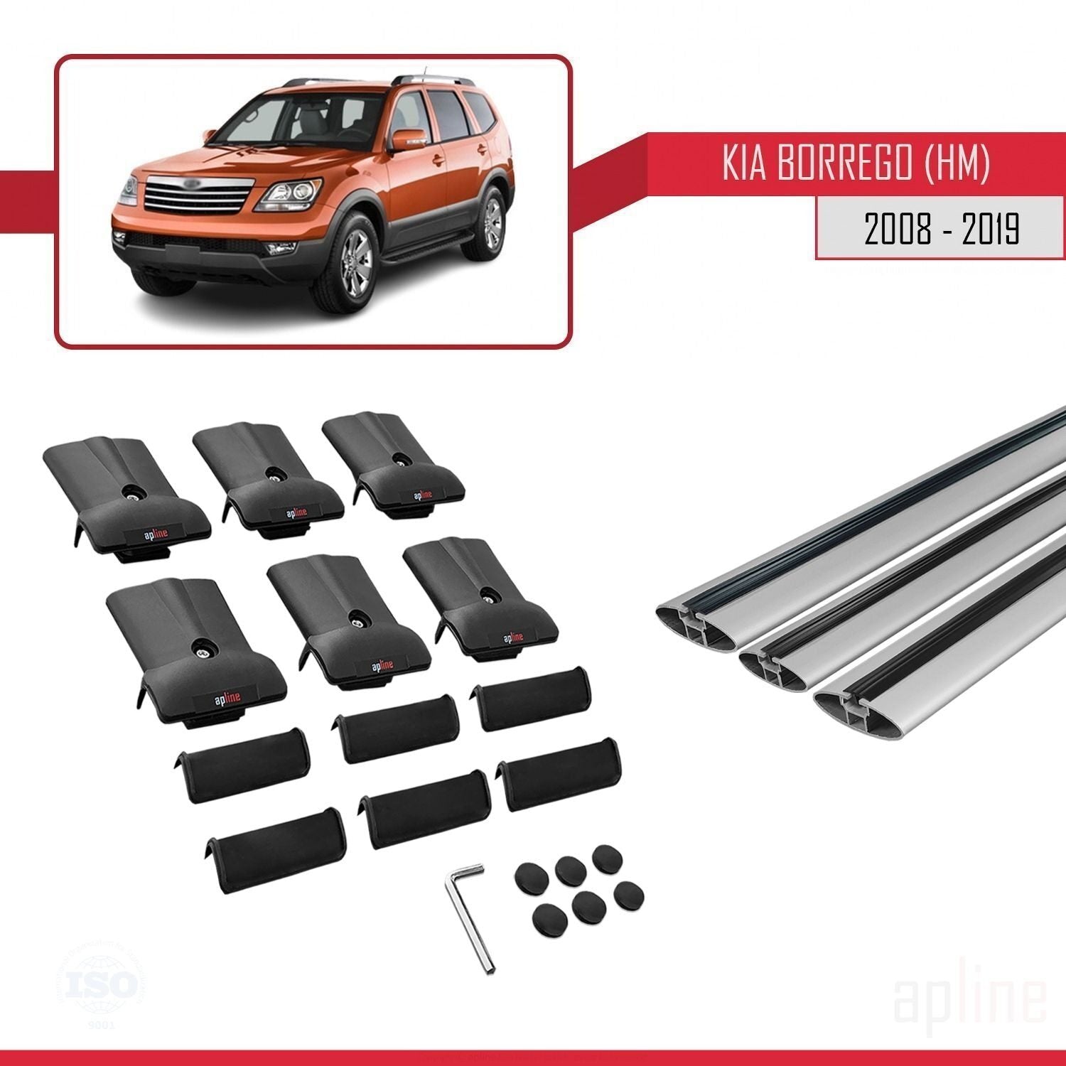 Compatible avec Kia Borrego (HM) 2008-2019 FLY Model Barres de Toit Railing Porte-Bagages de Voiture Gris Aluminium 3 Barres