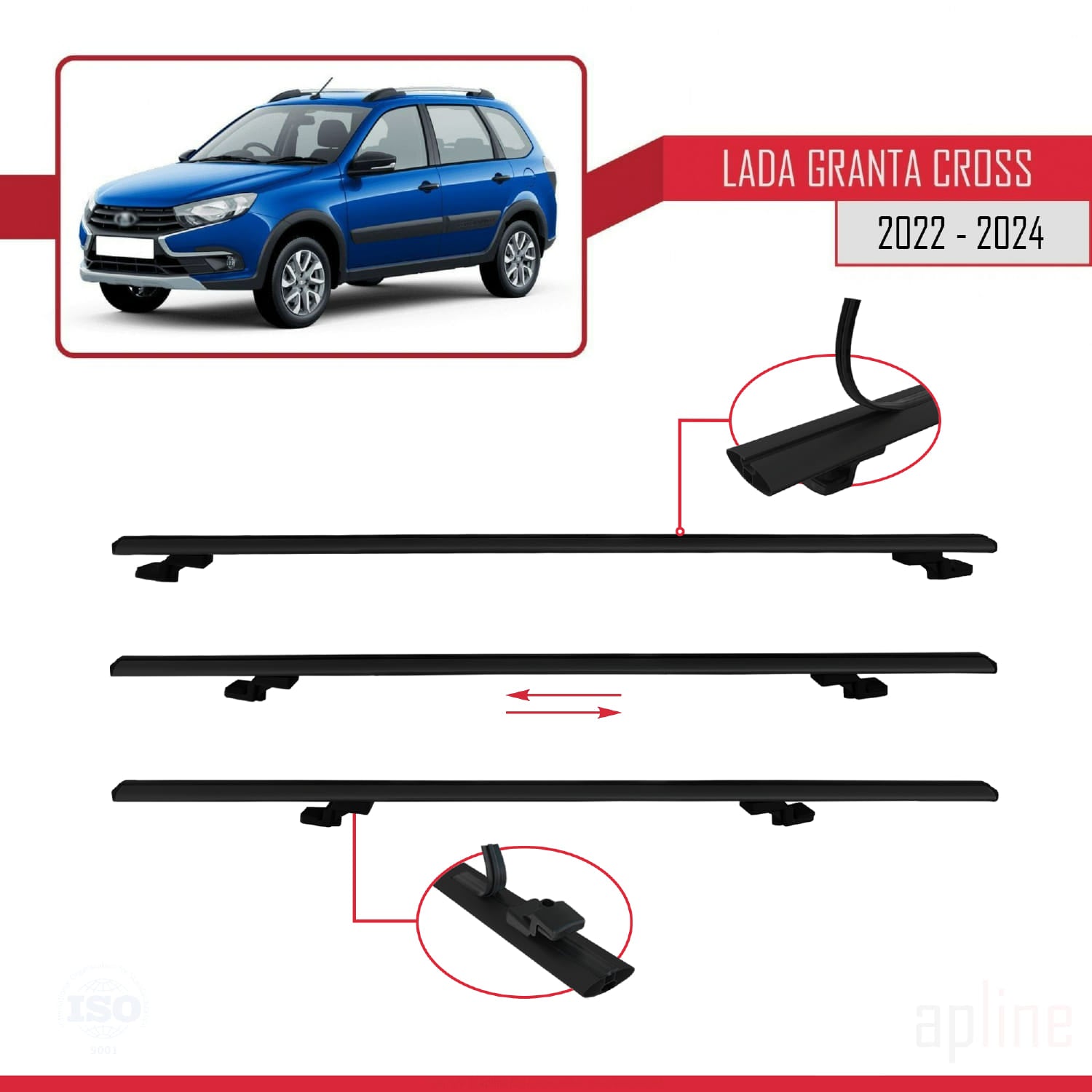 Compatible avec Lada Granta Cross 2022-2024 BASIC Model Barres de Toit Railing Porte-Bagages de Voiture Noir Aluminium 3 Barres