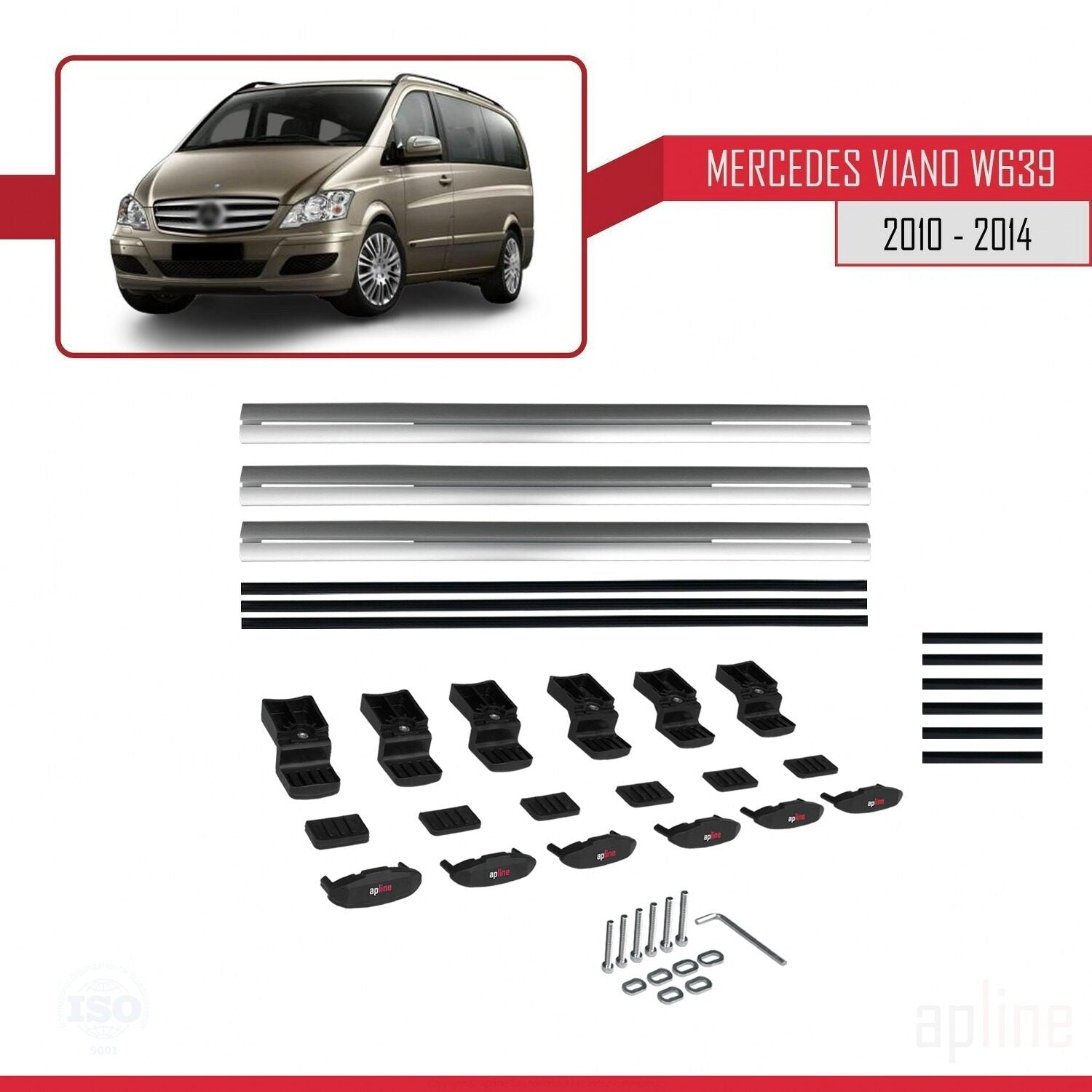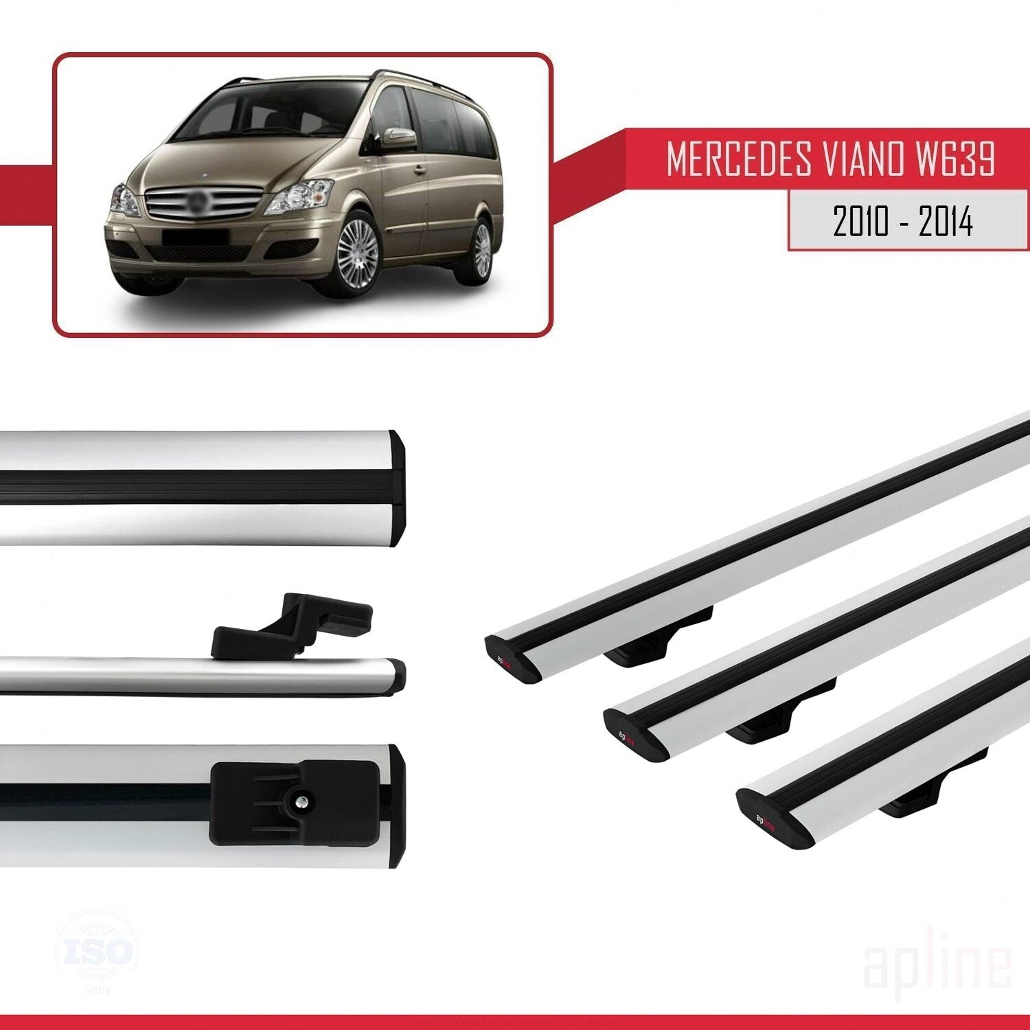 Compatible avec Mercedes Viano 2 (W639) Post-Facelift 2010-2014 BASIC Model Barres de Toit Railing Porte-Bagages de Voiture Gris Aluminium 3 Barres