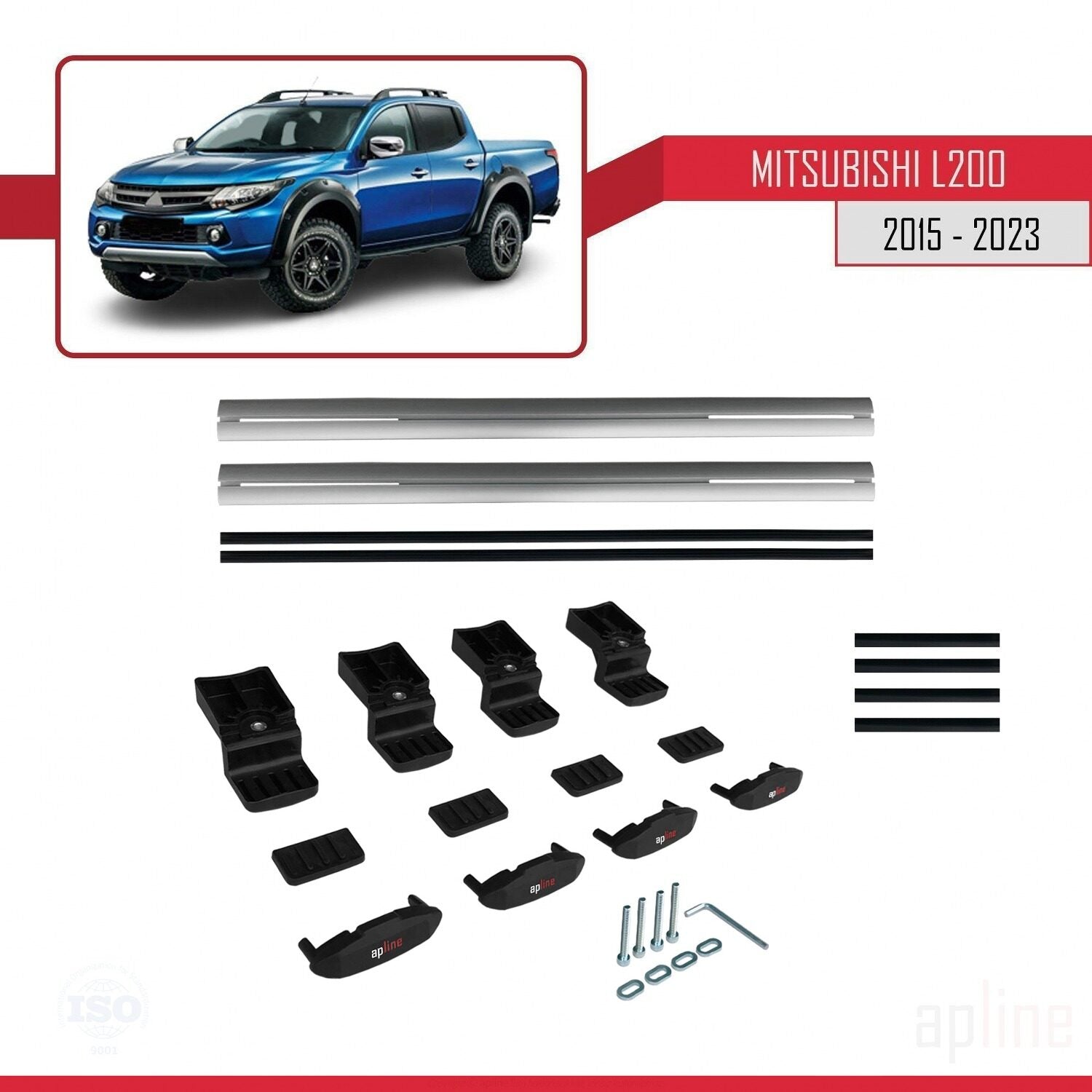 Compatible avec Mitsubishi L200 V 2015-2023 BASIC Model Barres de Toit Railing Porte-Bagages de Voiture Gris Aluminium 2 Barres