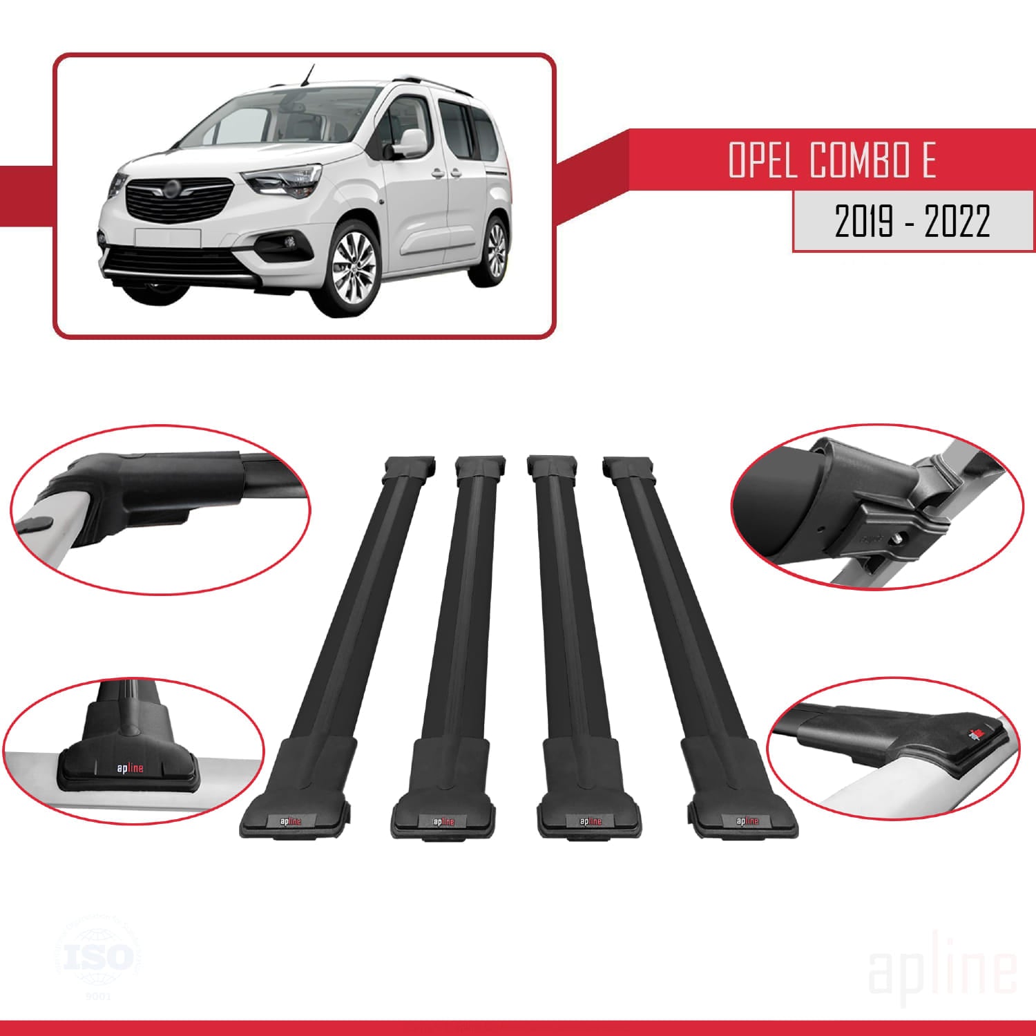 Compatible avec Opel Combo E 2019-2022 FLY Model Barres de Toit Railing Porte-Bagages de Voiture Noir Aluminium 4 Barres