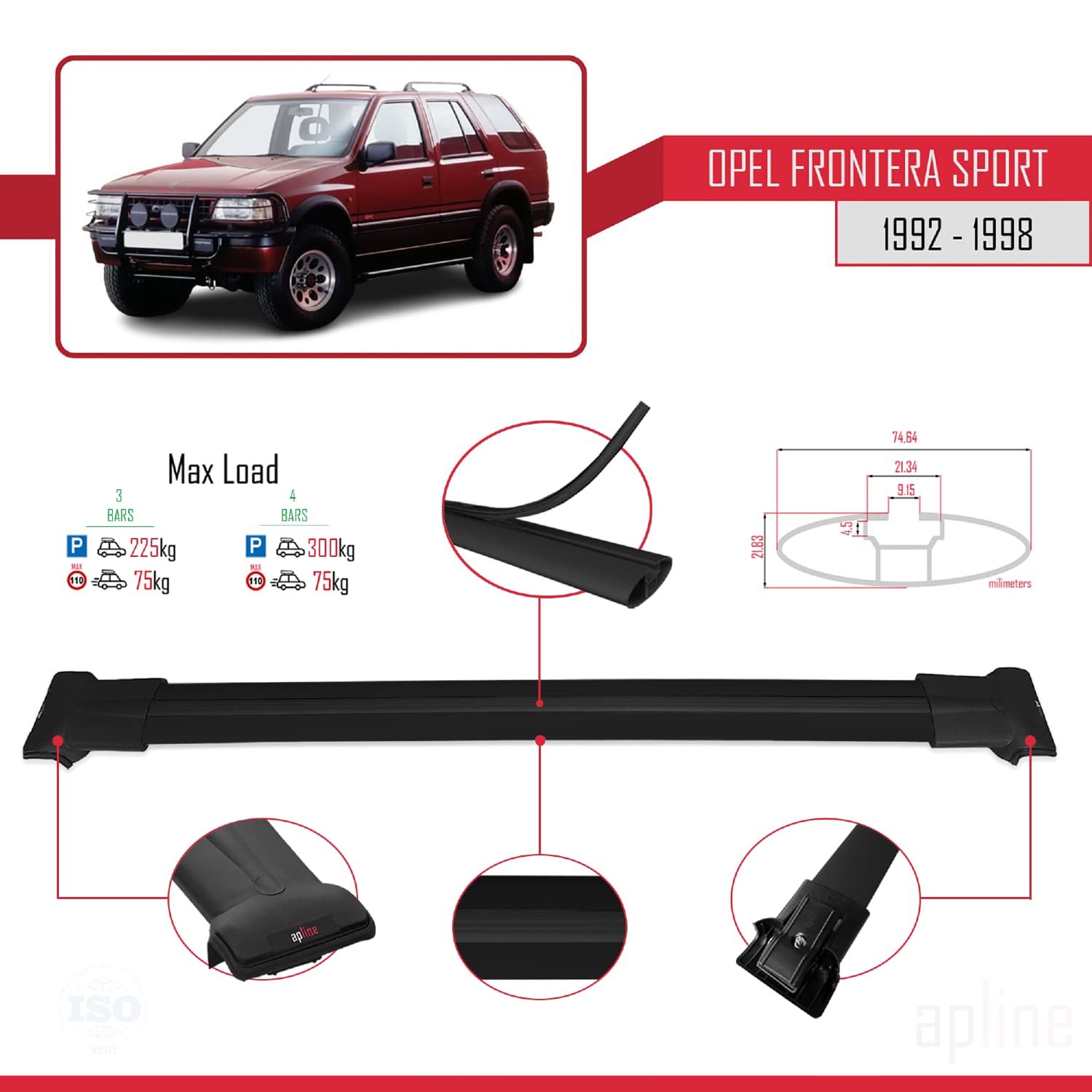 Compatible avec Opel Frontera Sport 1992-1998 FLY Model Barres de Toit Railing Porte-Bagages de Voiture Noir Aluminium 3 Barres