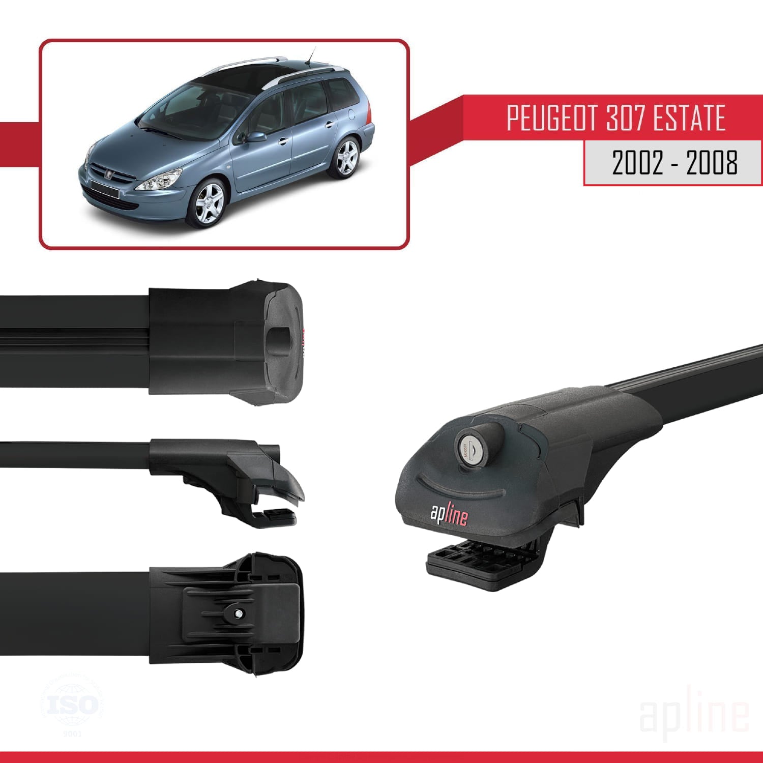 Compatible avec Peugeot 307 Break 2002-2008 ACE-1 Barres de Toit Railing Porte-Bagages de Voiture Noir Aluminium 2 Barres