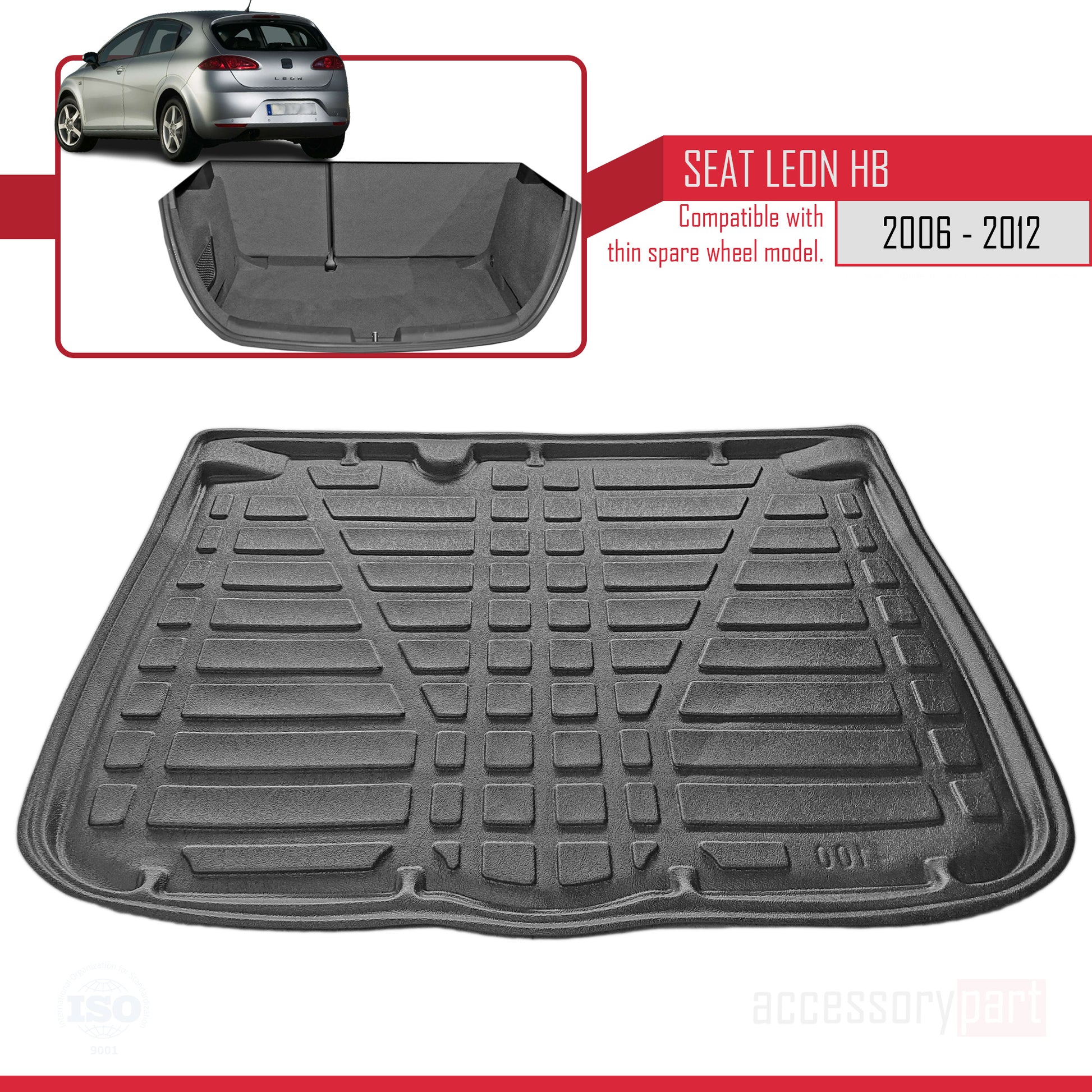 Compatible avec Seat Leon 2 (1P) 2006-2012 Flexible Tapis de Coffre Plancher de Chargement Noir