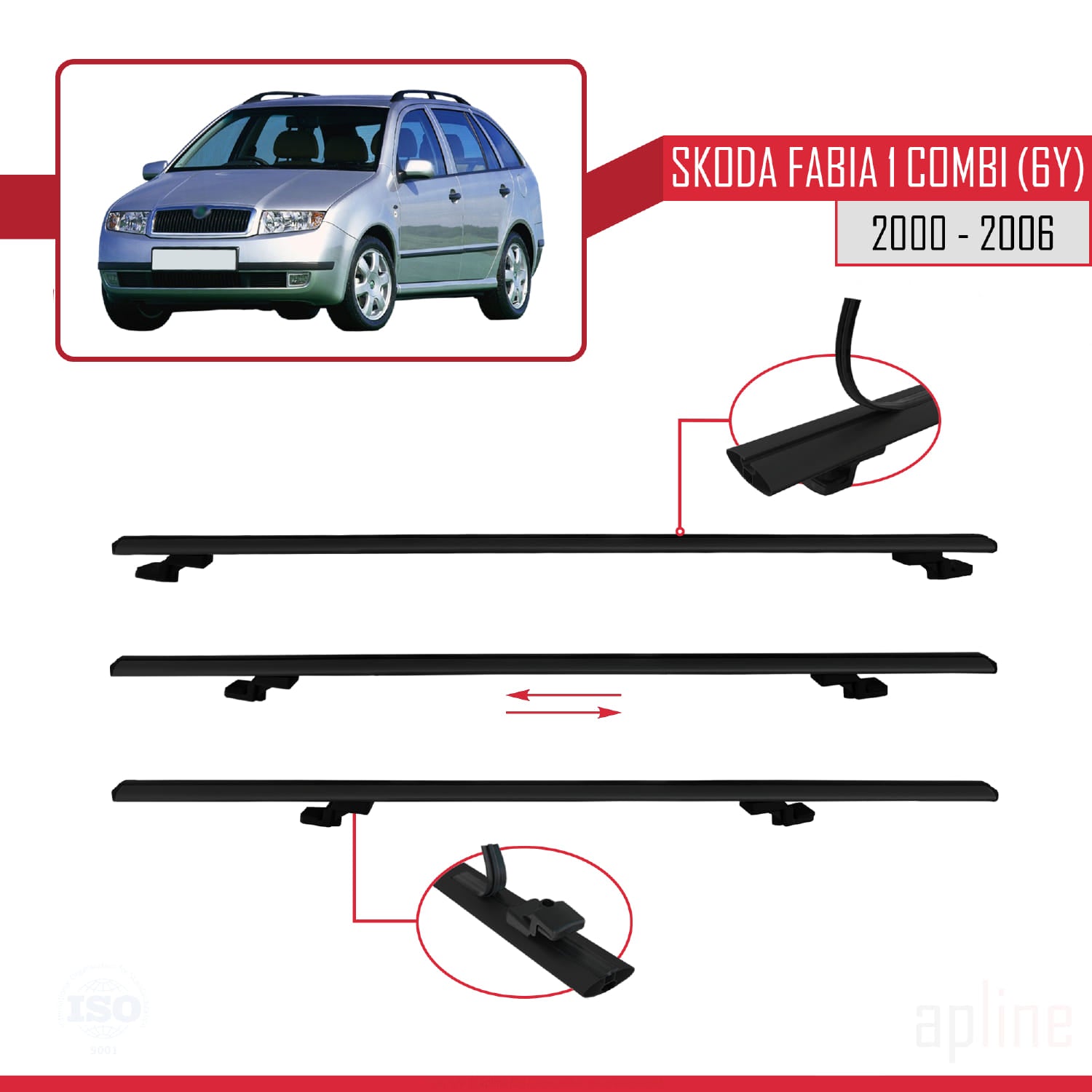 Compatible avec Skoda Fabia (6Y) Break 2000-2006 BASIC Model Barres de Toit Railing Porte-Bagages de Voiture Noir Aluminium 3 Barres