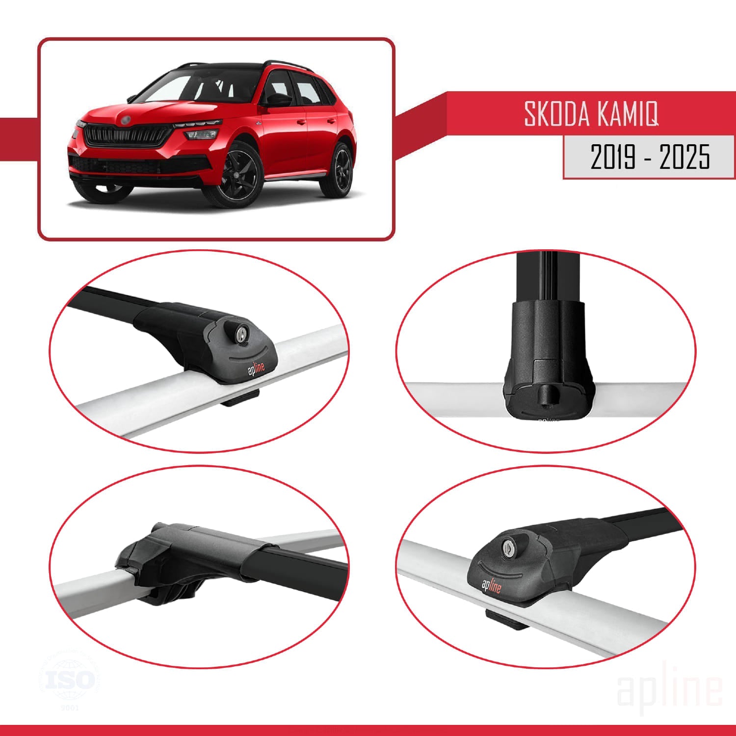 Compatible avec Skoda Kamiq 2019-2025 ACE-1 Barres de Toit Railing Porte-Bagages de Voiture Noir Aluminium 2 Barres