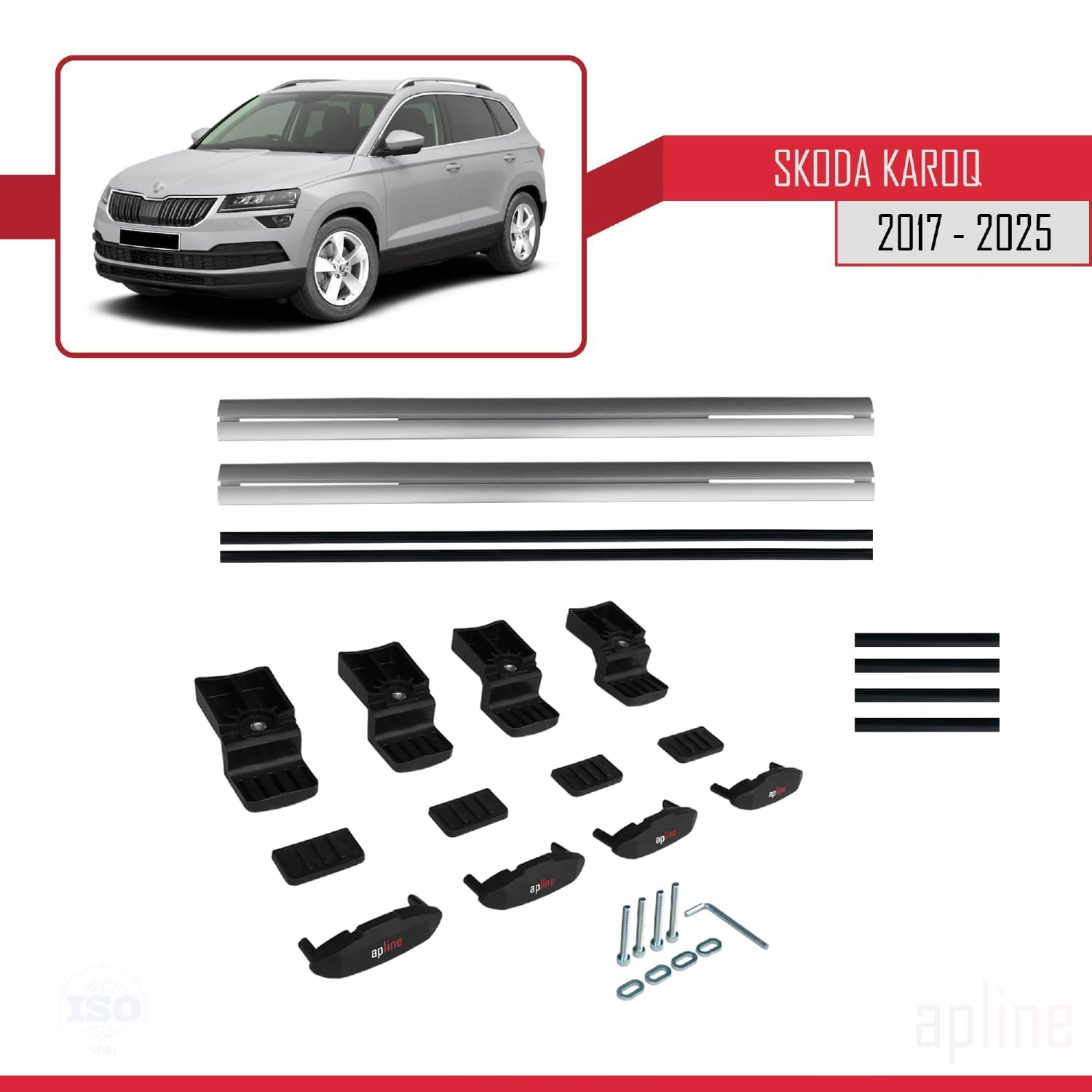Compatible avec Skoda Karoq 2017-2025 BASIC Model Barres de Toit Railing Porte-Bagages de Voiture Gris Aluminium 2 Barres