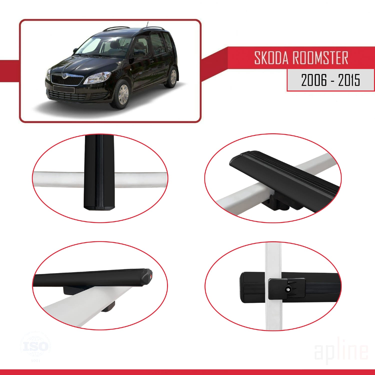 Compatible avec Skoda Roomster 2006-2015 BASIC Model Barres de Toit Railing Porte-Bagages de Voiture Noir Aluminium 2 Barres