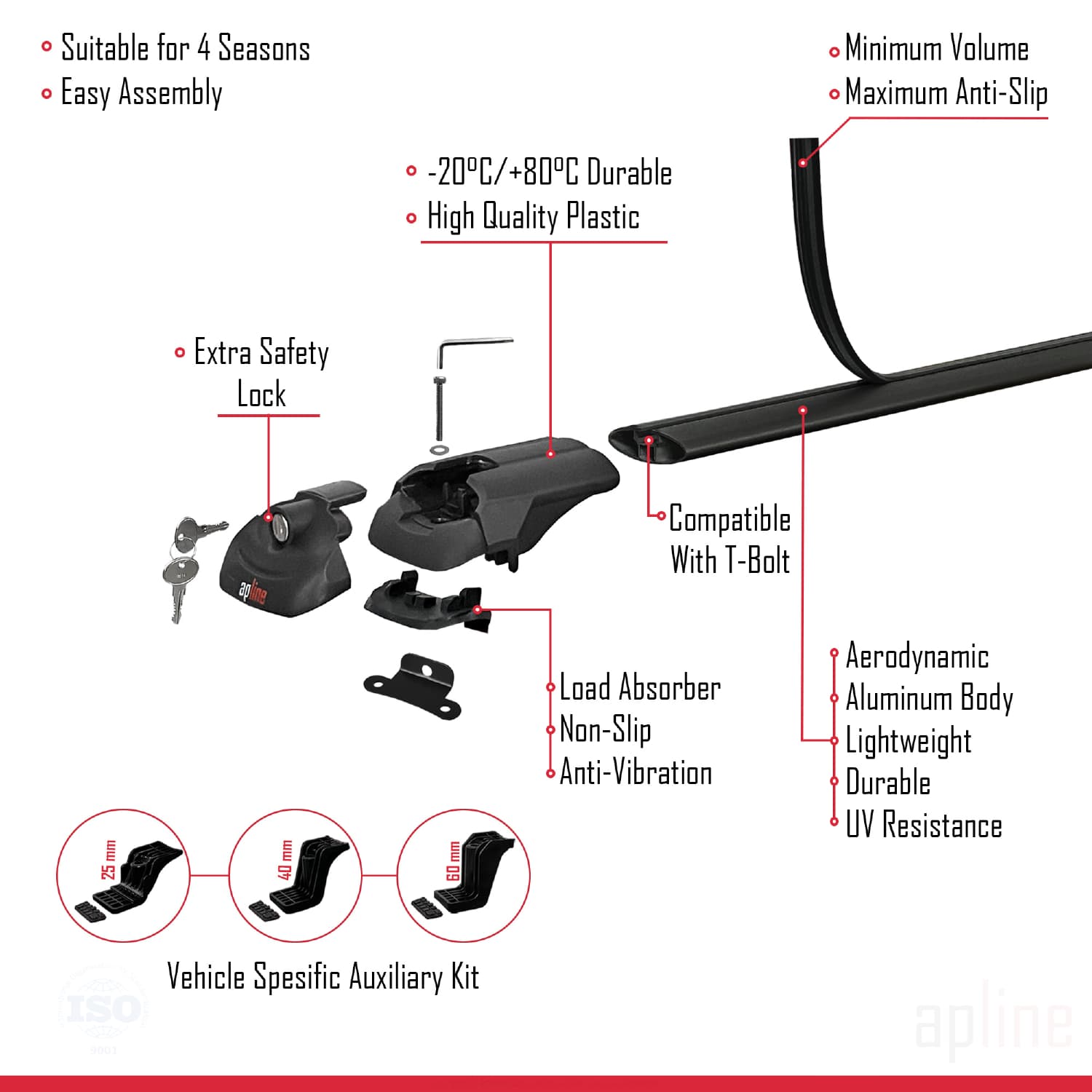 Il est utilisé pour transporter des charges sur votre véhicule. Il est nécessaire pour l'installation de porte-vélos, de porte-skis et de produits de type coffre de toit. Ce produit est monté sur les barres de toit du véhicule. La limite maximale de charge transportée avec ce produit dans un véhicule en mouvement est de 75 kg. (Indépendamment de 2 ou 3 barres en aluminium, la limite légale est de 75 kg).