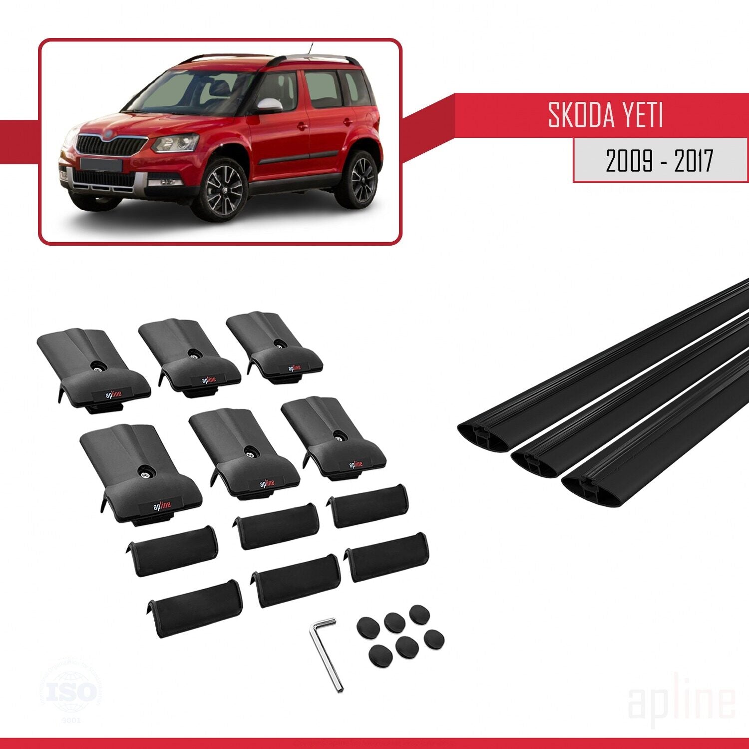 Compatible avec Skoda Yeti 2009-2017 FLY Model Barres de Toit Railing Porte-Bagages de Voiture Noir Aluminium 3 Barres