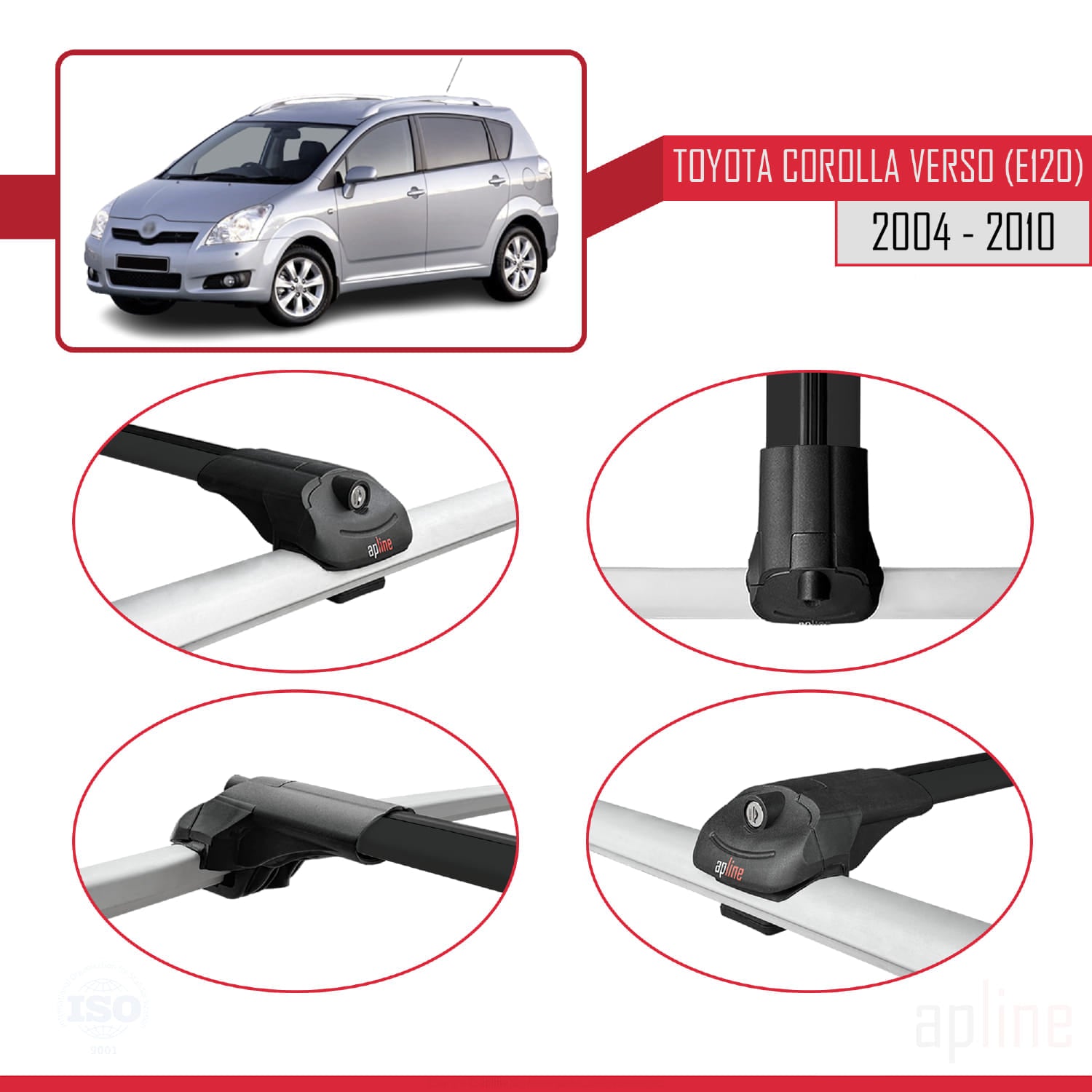Compatible avec Toyota Corolla Verso 2 (AR10) 2004-2010 ACE-1 Barres de Toit Railing Porte-Bagages de Voiture Noir Aluminium 2 Barres