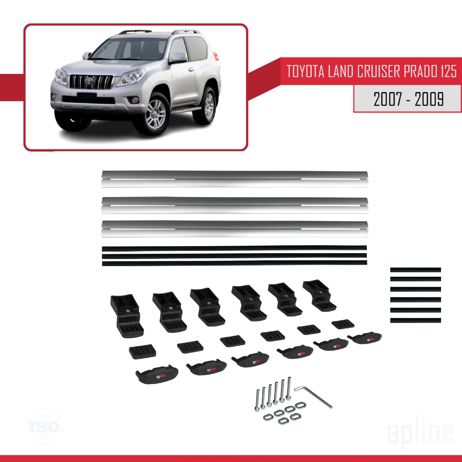 Compatible avec Toyota Land Cruiser Prado (J125) 2007-2009 BASIC Model Barres de Toit Railing Porte-Bagages de Voiture Gris Aluminium 3 Barres