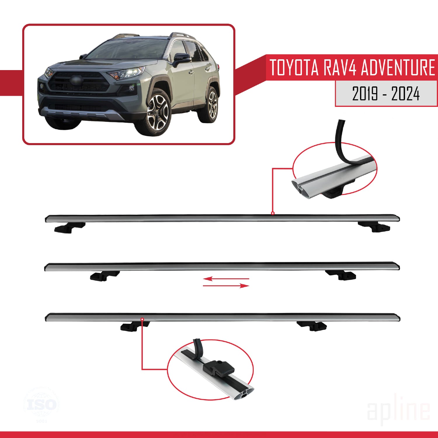 Compatible avec Toyota RAV4 Adventure 2019-2024 BASIC Model Barres de Toit Railing Porte-Bagages de Voiture Gris Aluminium 3 Barres