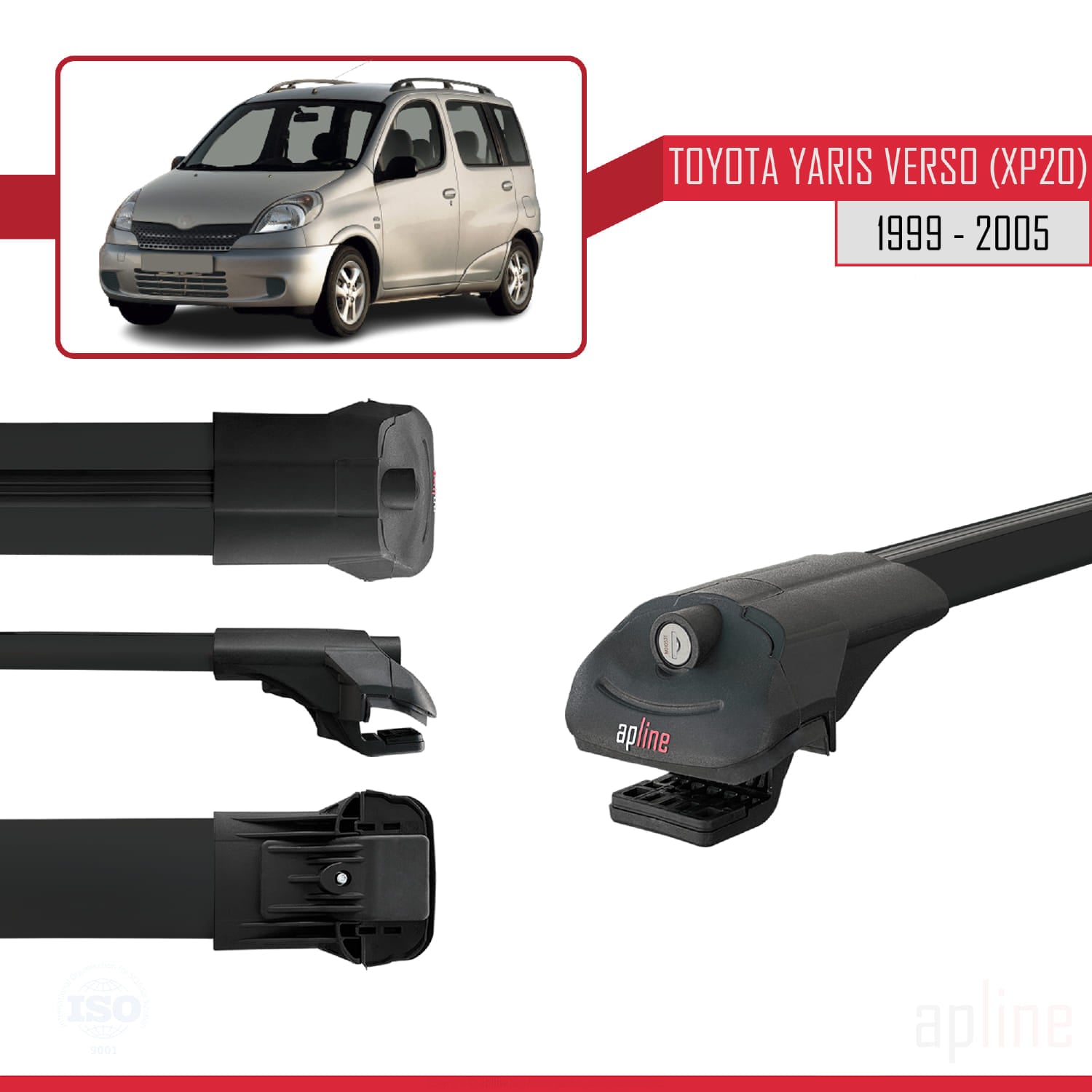 Compatible avec Toyota Yaris Verso (XP20) 1999-2005 ACE-1 Barres de Toit Railing Porte-Bagages de Voiture Noir Aluminium 3 Barres