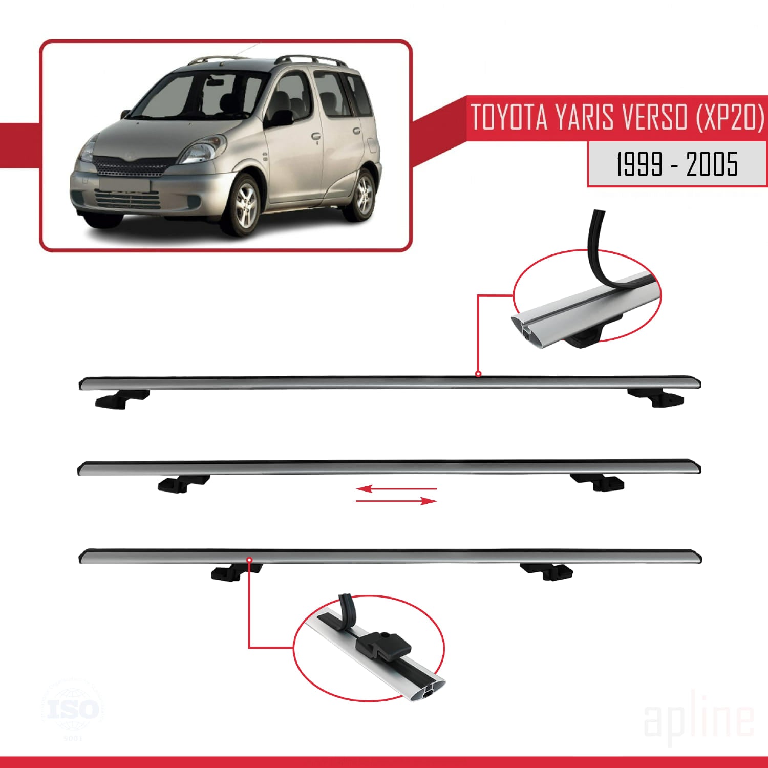 Compatible avec Toyota Yaris Verso (XP20) 1999-2005 BASIC Model Barres de Toit Railing Porte-Bagages de Voiture Gris Aluminium 2 Barres