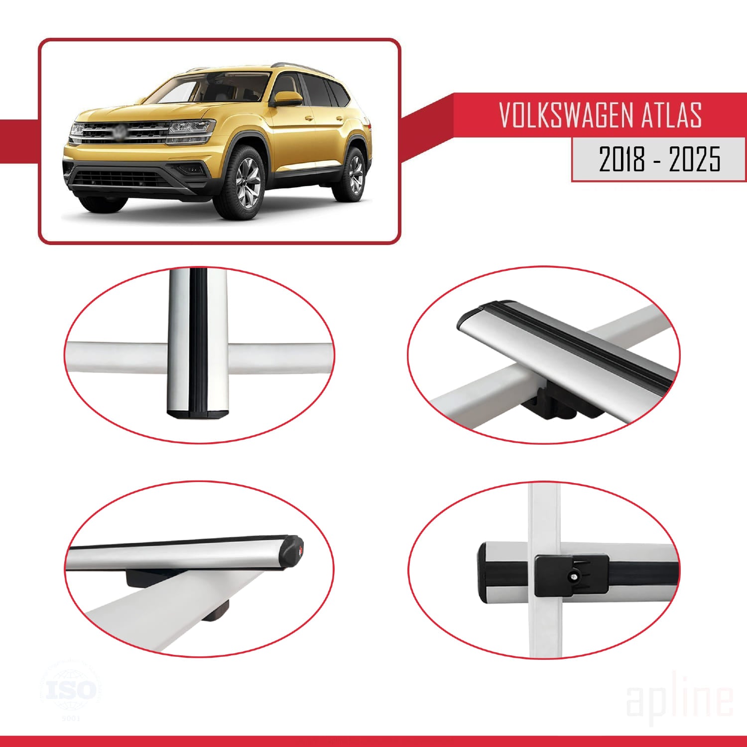 Compatible avec Volkswagen Atlas (CA1) 2018-2025 BASIC Model Barres de Toit Railing Porte-Bagages de Voiture Gris Aluminium 2 Barres