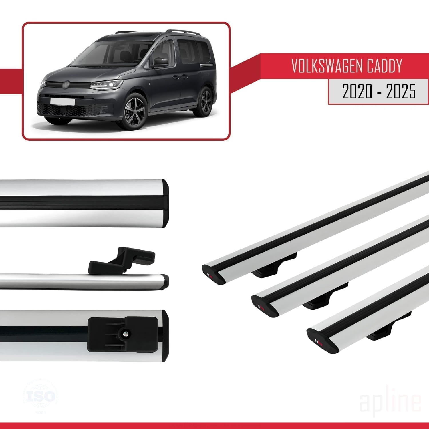 Compatible avec Volkswagen Caddy 4 (SB) 2020-2025 BASIC Model Barres de Toit Railing Porte-Bagages de Voiture Gris Aluminium 3 Barres