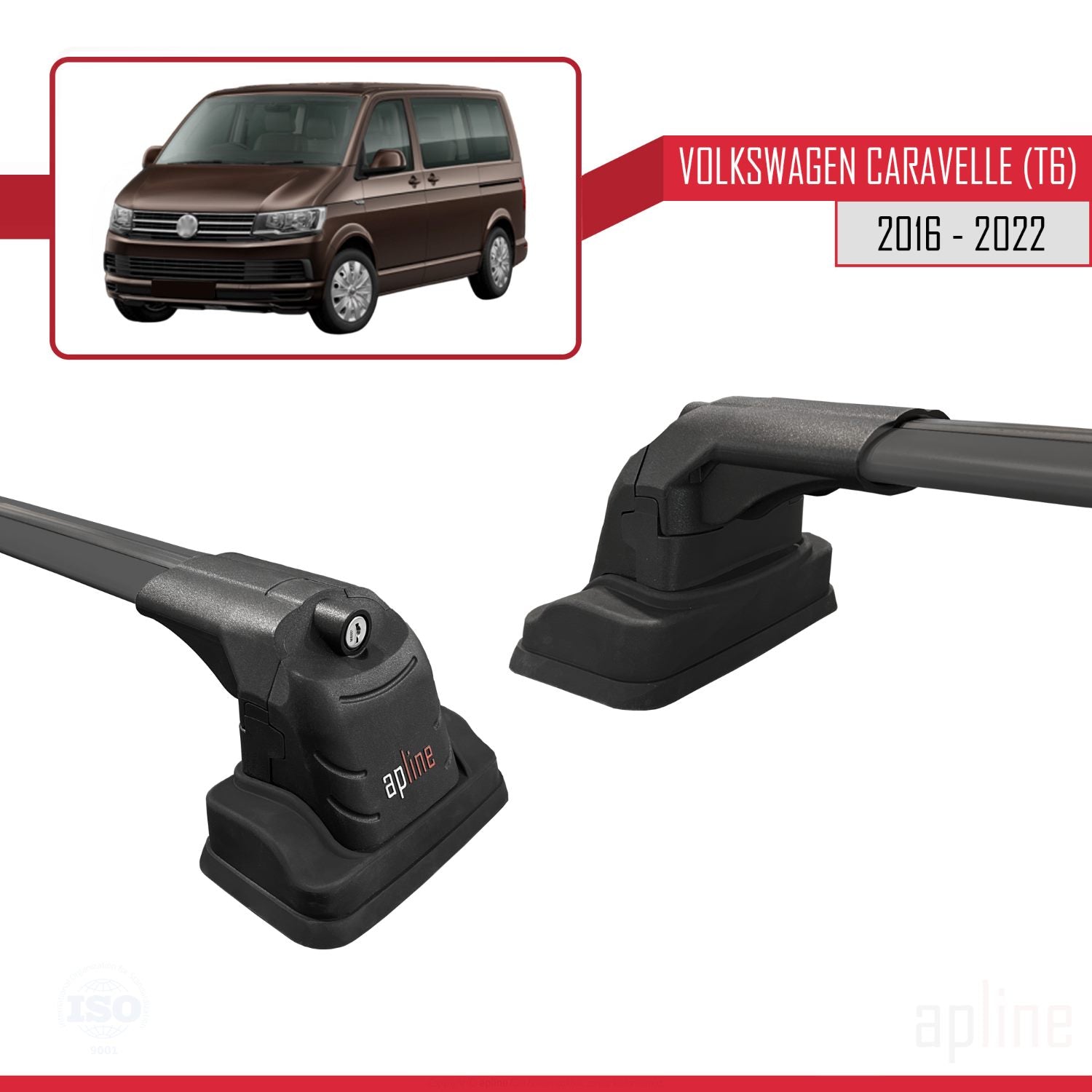 Compatible avec Volkswagen Caravelle (T6) 2016-2022 ACE-3 Barres de Toit Railing Porte-Bagages de Voiture Noir Aluminium 2 Barres