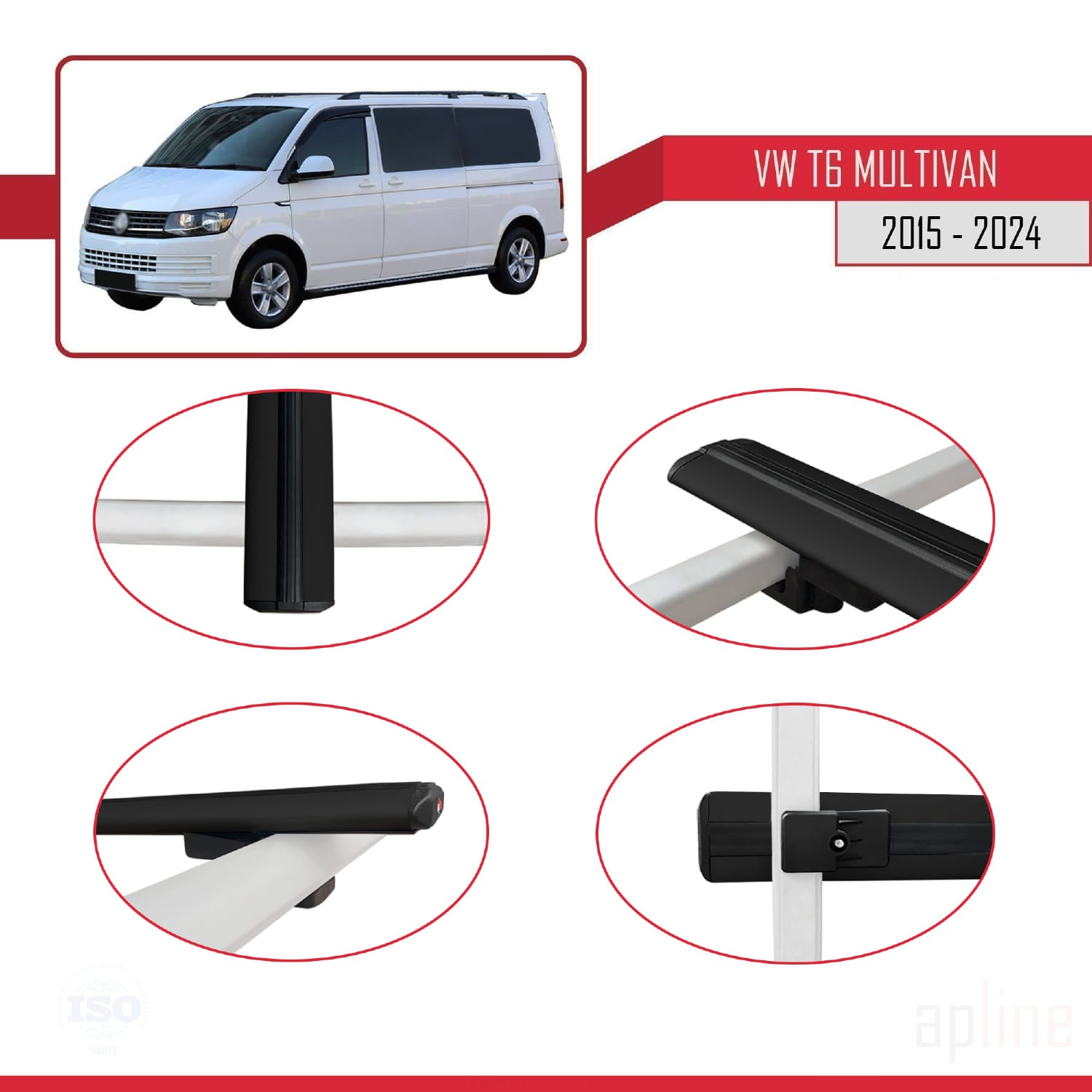 Compatible avec Volkswagen T6 Multivan 2015-2024 BASIC Model Barres de Toit Railing Porte-Bagages de Voiture Noir Aluminium 3 Barres