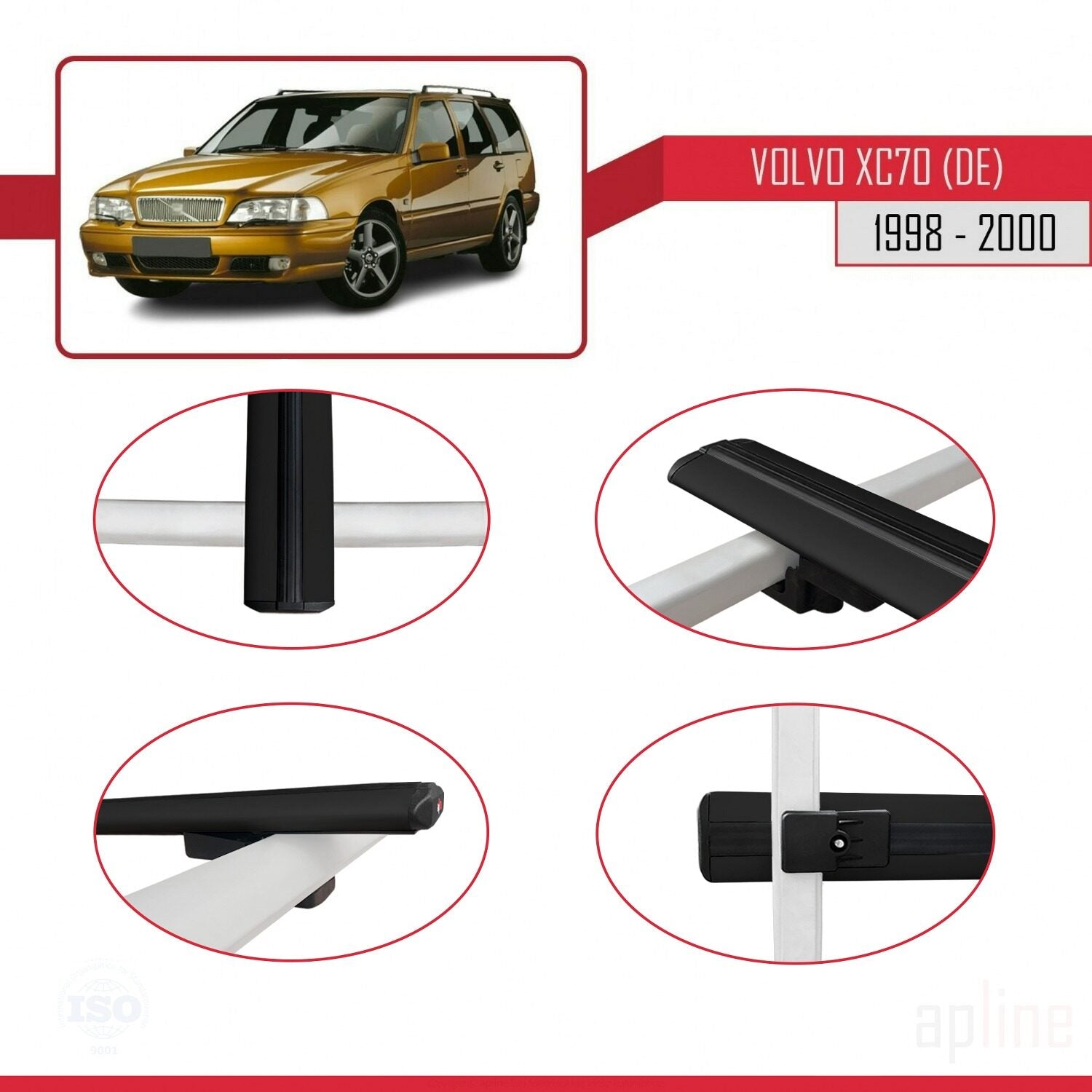 Compatible avec Volvo XC70 1998-2000 BASIC Model Barres de Toit Railing Porte-Bagages de Voiture Noir Aluminium 2 Barres