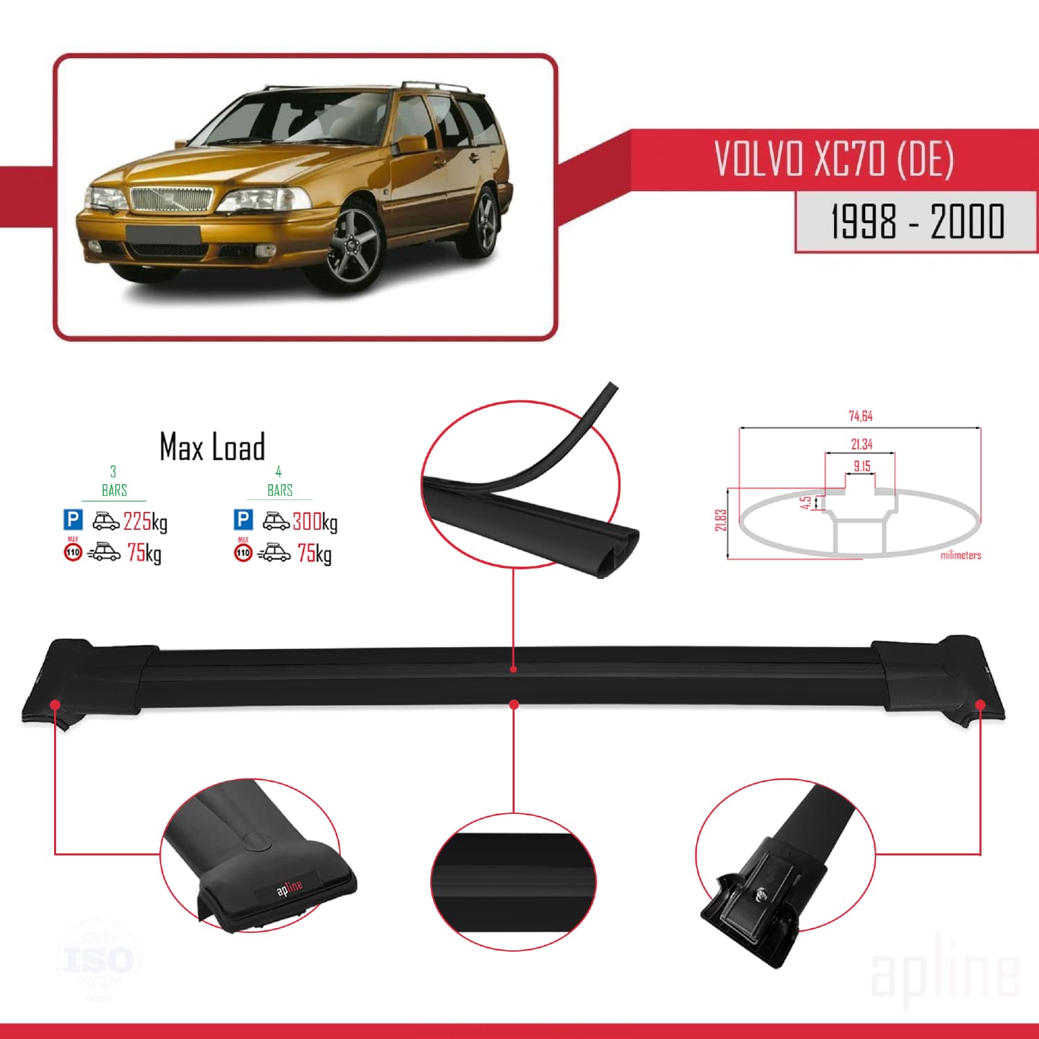 Compatible avec Volvo XC70 1998-2000 FLY Model Barres de Toit Railing Porte-Bagages de Voiture Noir Aluminium 3 Barres